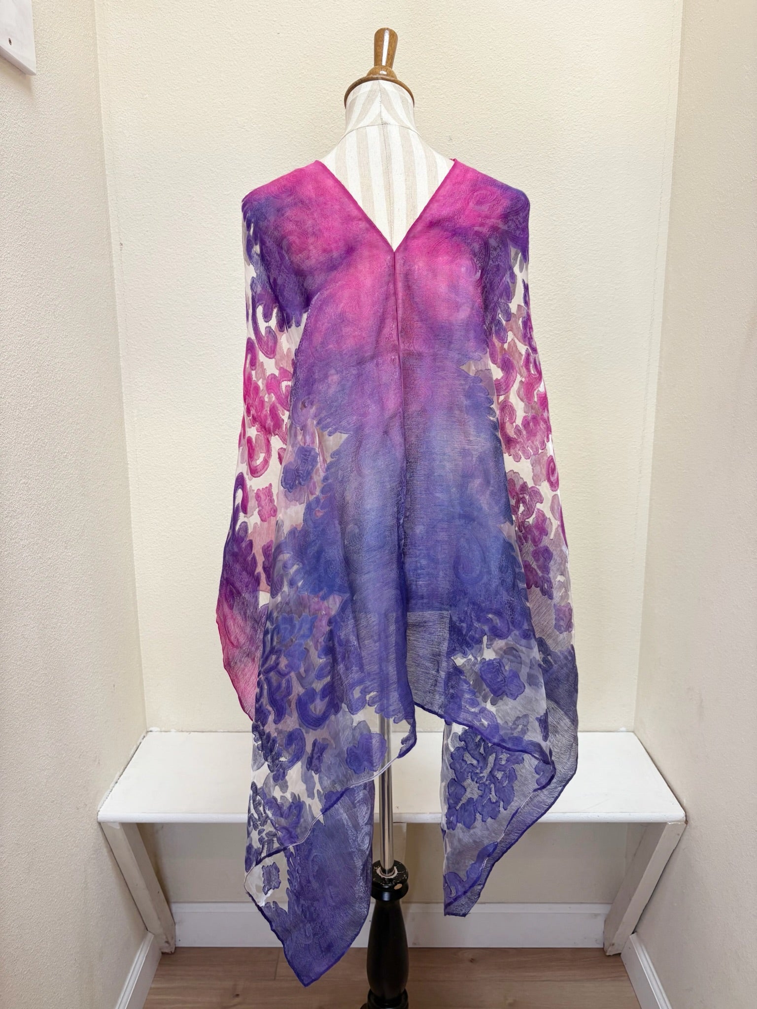 By creating their own mix of natural dyes and color combinations on this wonderful burnout poncho, this Spain in America piece is light and unique for any season!