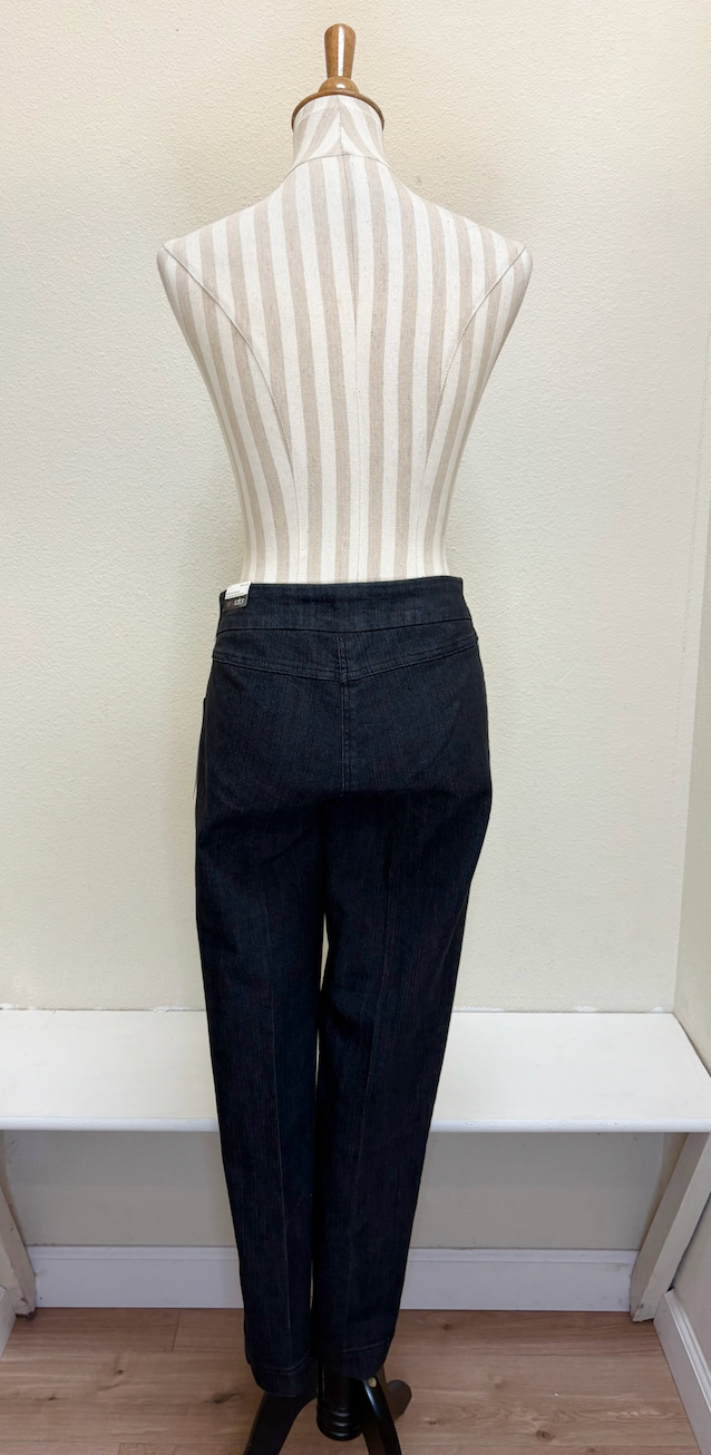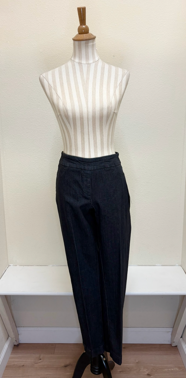 Slimsation BLACK DENIM LONG/Narrow Women's Wide Band Pull-On Straight Leg Pant With Tummy Control (M2604P)- BLACK DENIM