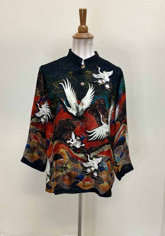 Citron "Cranes Over Mountain" Silk Blouse - 1213COM