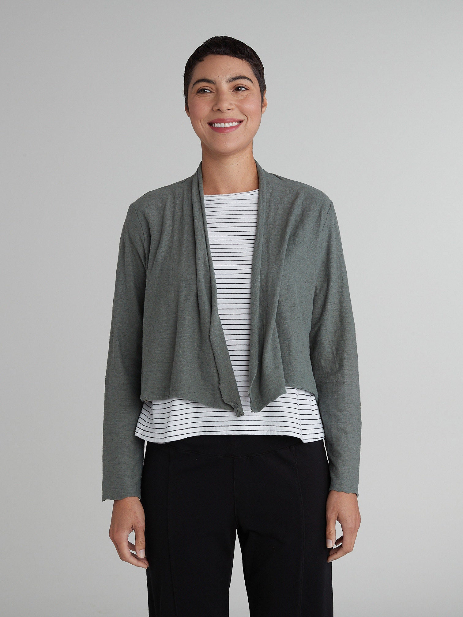 CUT LOOSE - Linen Cotton Jersey Cropped Cardigan - 5017388