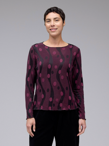 Cut Loose - your "go-to" pieces! A returning fabric and design! This dot jacquard pearl edge tee features a round neck, long sleeves and a straight cut. Made from a soft & comfortable fabric. We love the playful and arty design for fall!