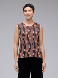 Cut Loose - your "go-to" pieces! A returning fabric and design! This dot jacquard shell features a crew neck, sleeveless and a straight cut. Made from a soft & comfortable fabric. We love the playful and arty design for fall!