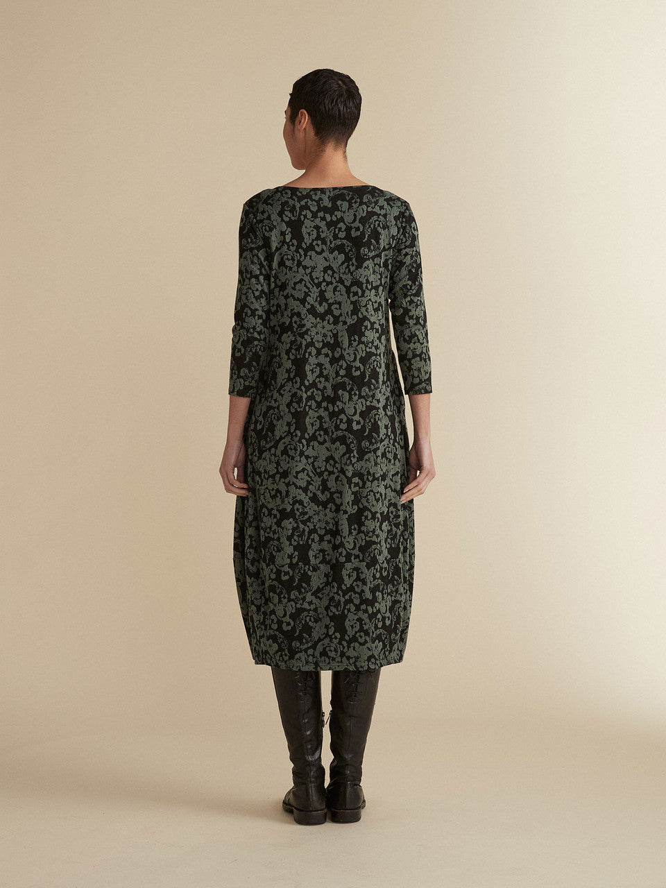 Cut Loose - your "go-to" pieces! A returning fabric and design! This floral jacquard maxi dress features a round neck, 3/4 sleeves, side seam pockets and seam detail. Made from viscose stretch, this piece is mid-weight, soft and comfortable. Love this look for fall!