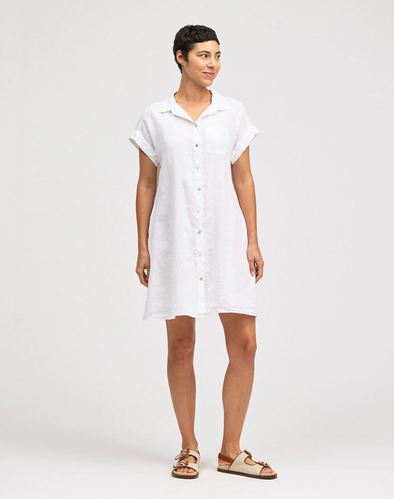 CUT LOOSE Hanky Linen Short Sleeve Shirt Dress - 4201147