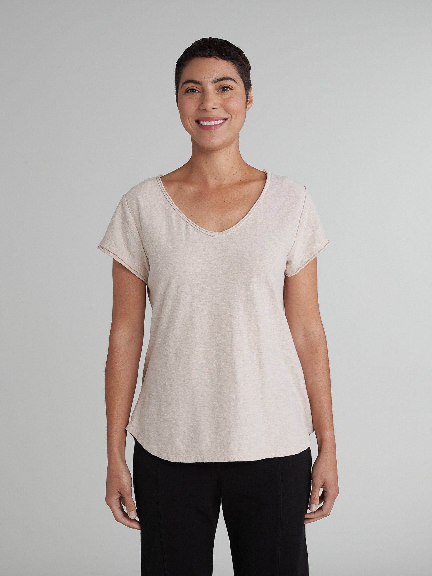 CUT LOOSE - Linen Cotton Jersey Raw Edge V-Neck Top - 5016849
