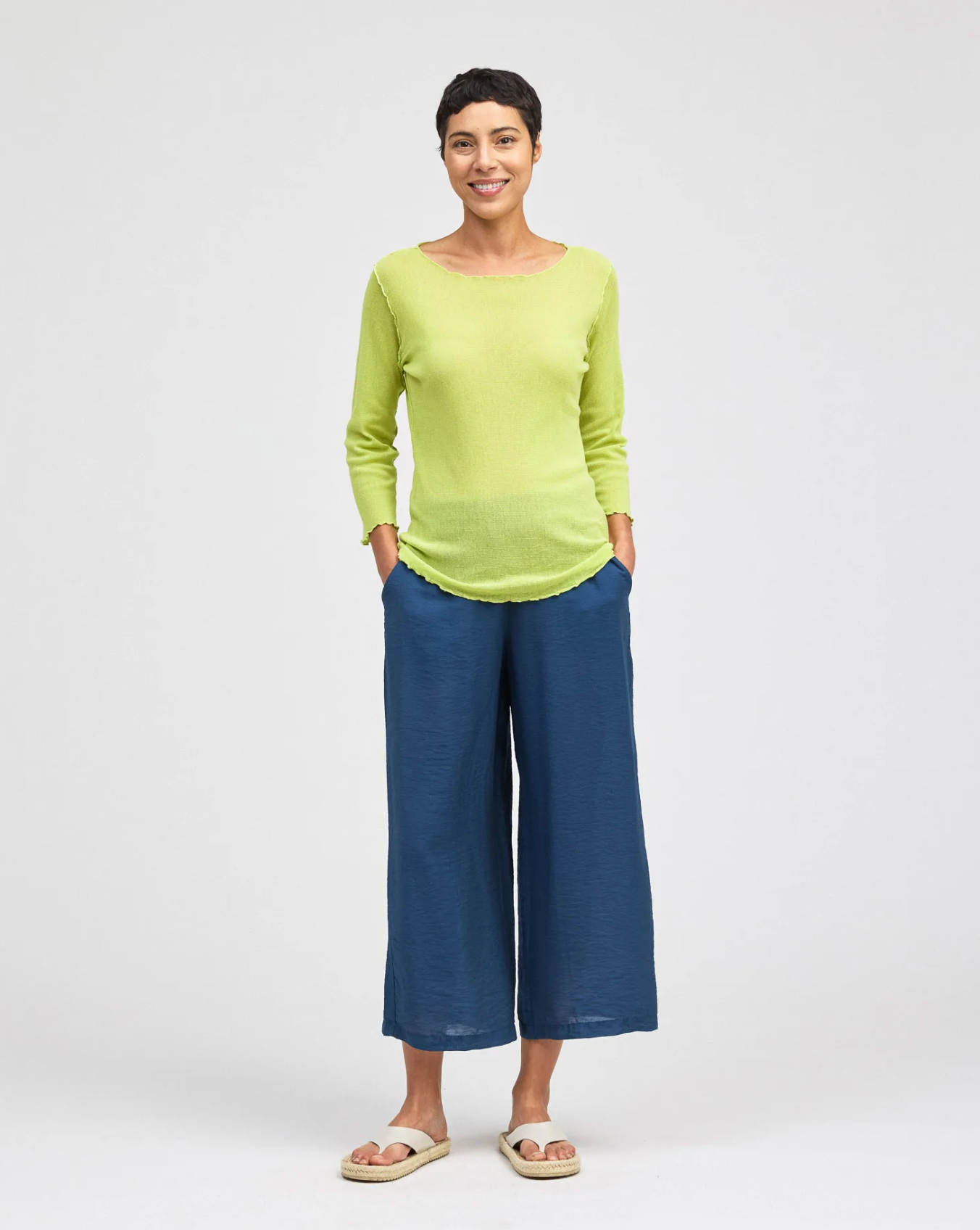 The model is wearing Naval.