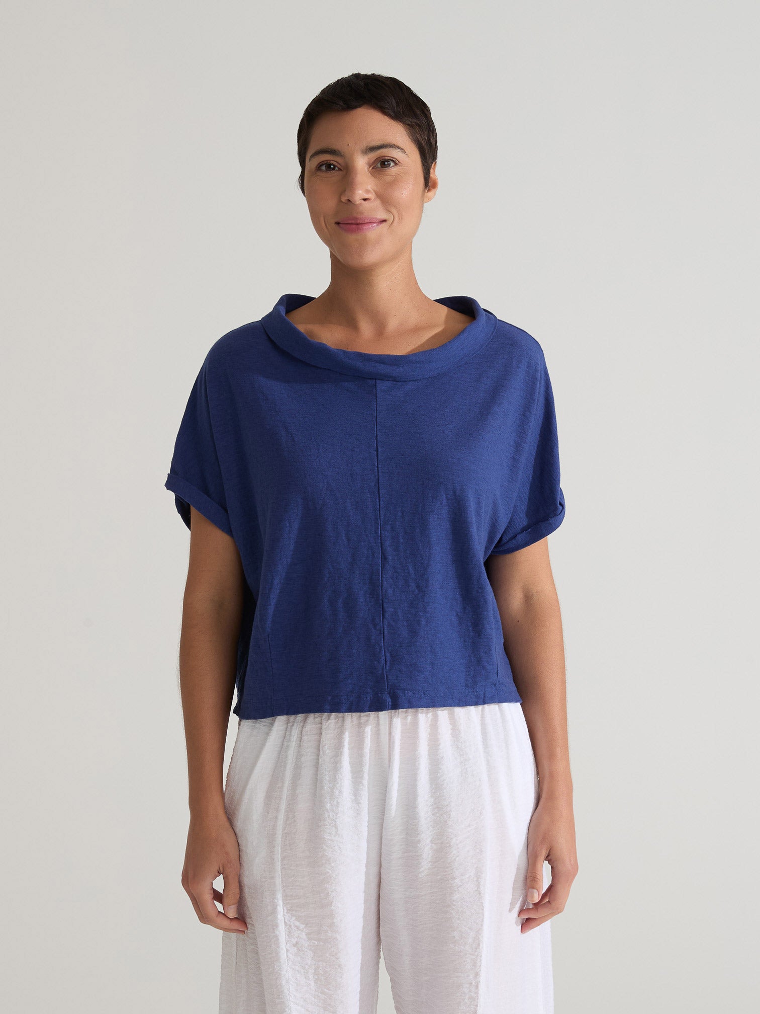 CUT LOOSE - Linen Cotton Jersey Roll Slv Cowl Top - 5016732