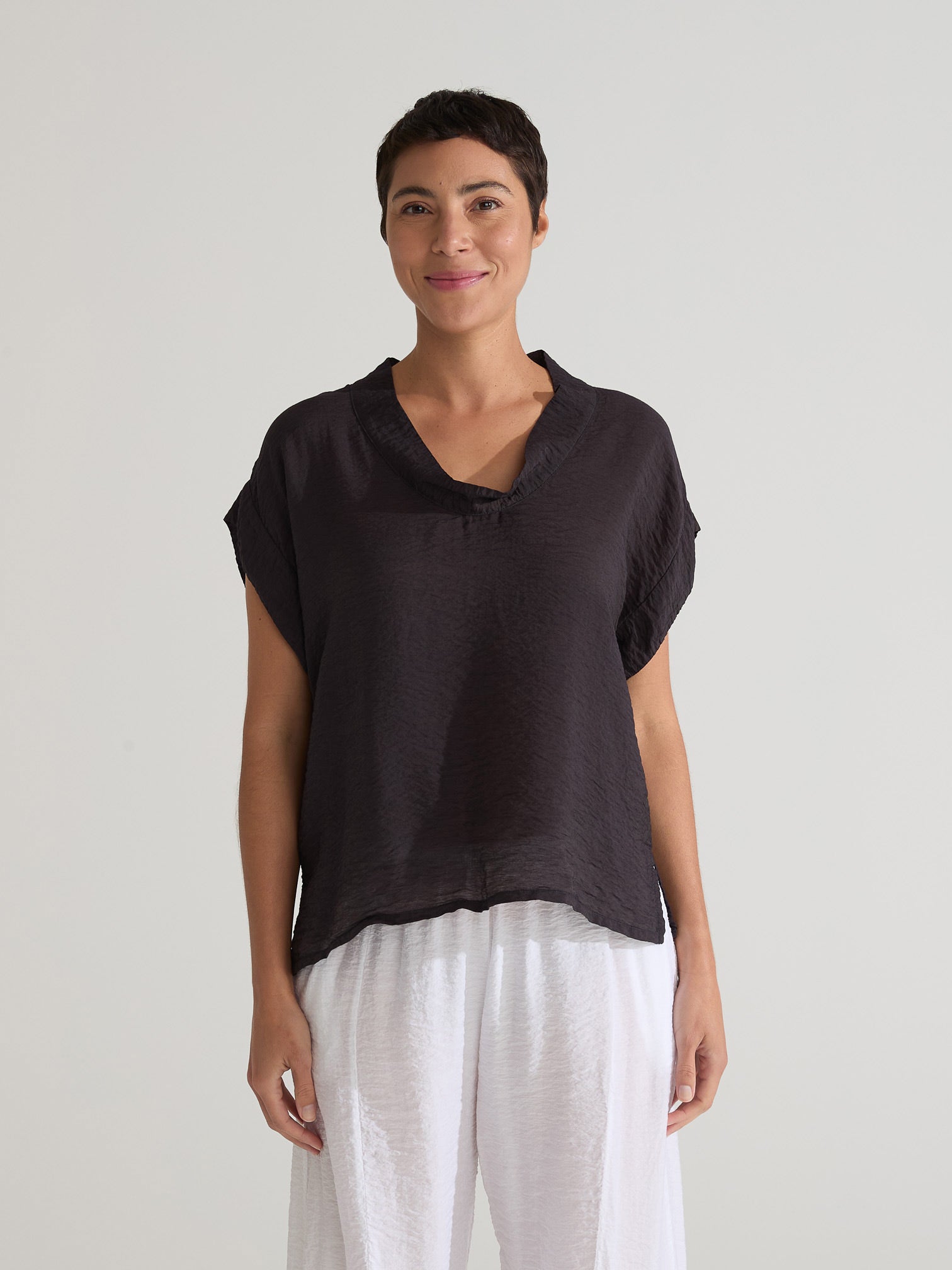 CUT LOOSE - Rayon Parachute S/S Cowl Top - 6216139