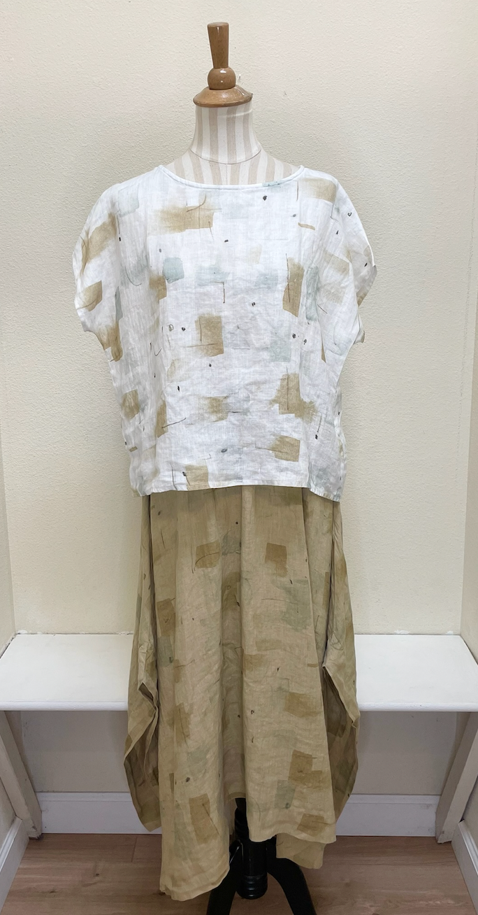 We love this piece paired with the Cut Loose Brush Stroke High Low Top!