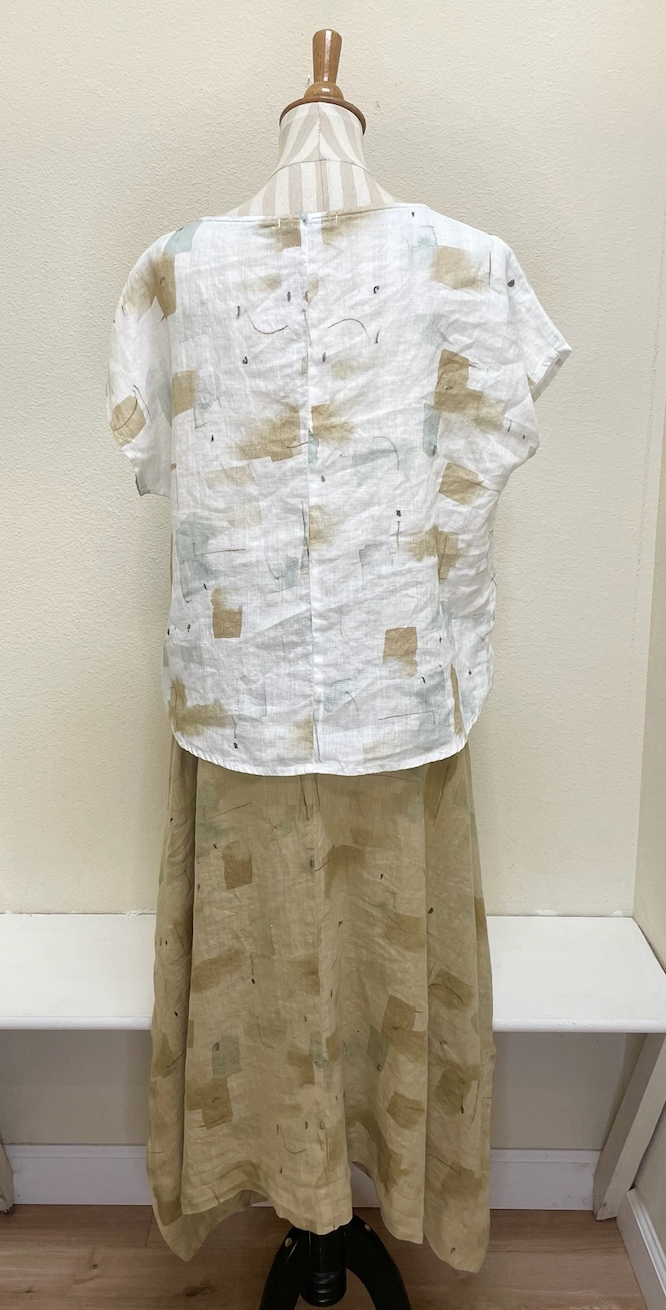 Cut Loose - your "go-to" pieces! A returning fabric and design! This skirt features side slits, providing both style and comfort. Love this for spring!