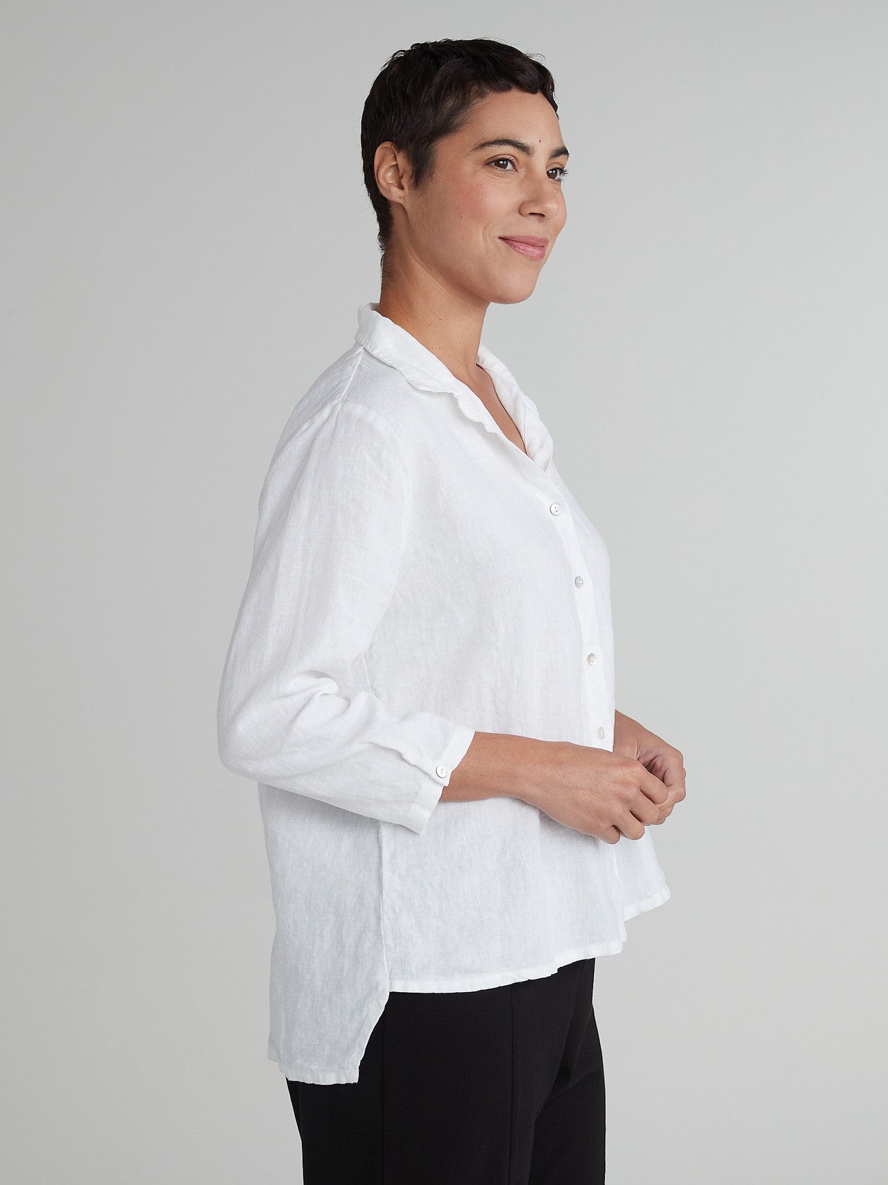 Cut Loose  - your "go-to" pieces! A wonderful fabric and design! This solid linen crop shirt features a button front to a collar, 3/4 sleeves with button detail and a hi-low straight hem. Made from solid linen, you'll love the design and fit. These are basics elevated to something special!