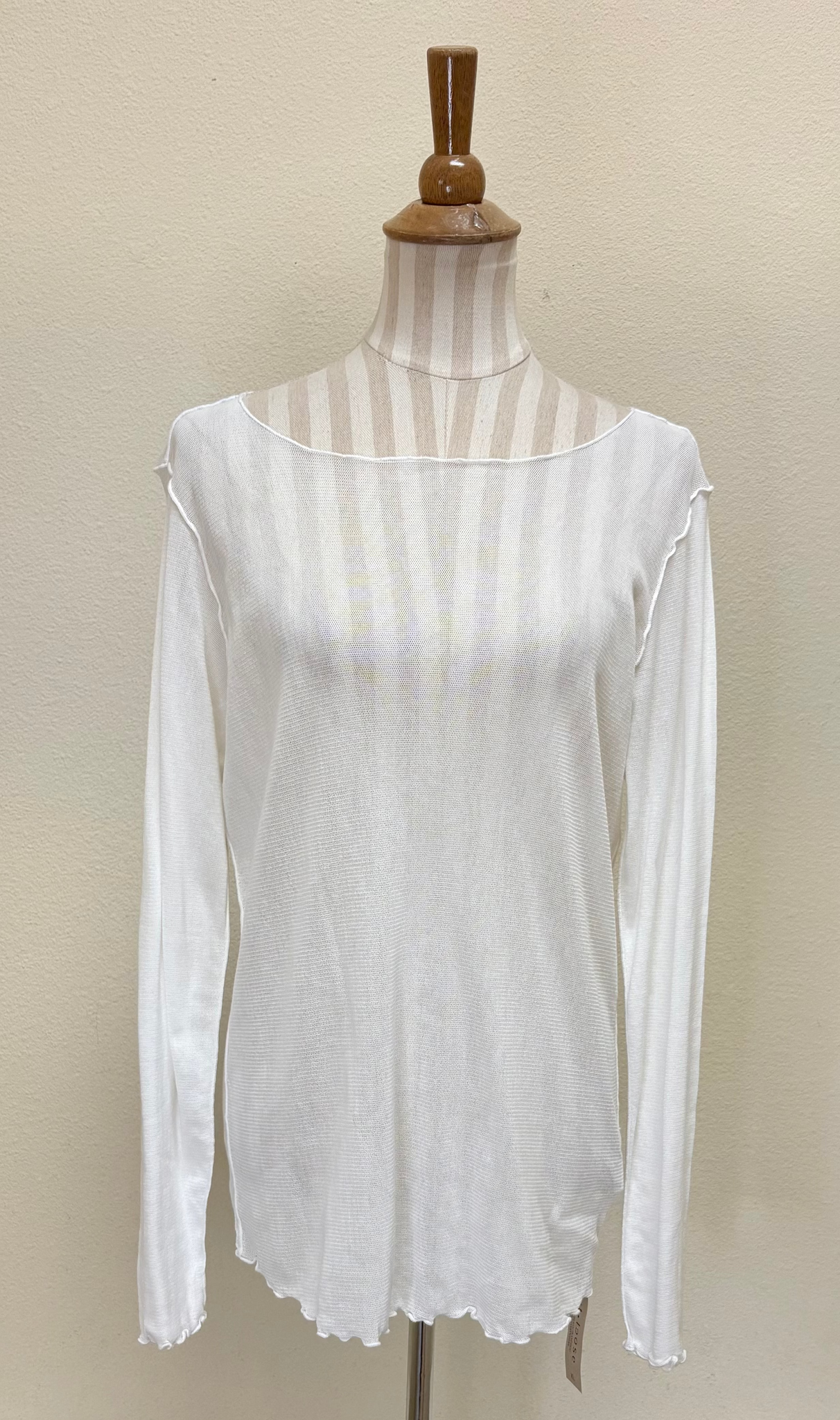 Cut Loose - your "go-to" pieces! A returning fabric and design! This tulle pearl edge top features a round neck, long sleeves and wavy hem detail. The fabric is lightweight and comfortable. A perfect Spring piece!