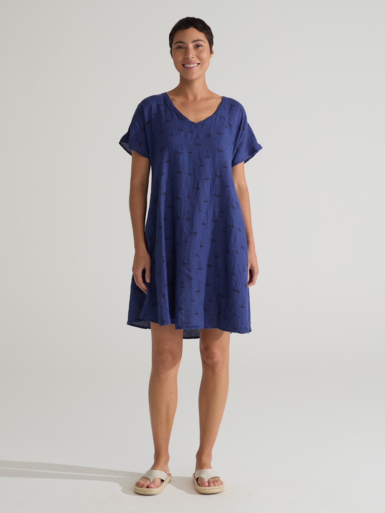 CUT LOOSE - Sailboats V-Neck Swing Dress - 4181141