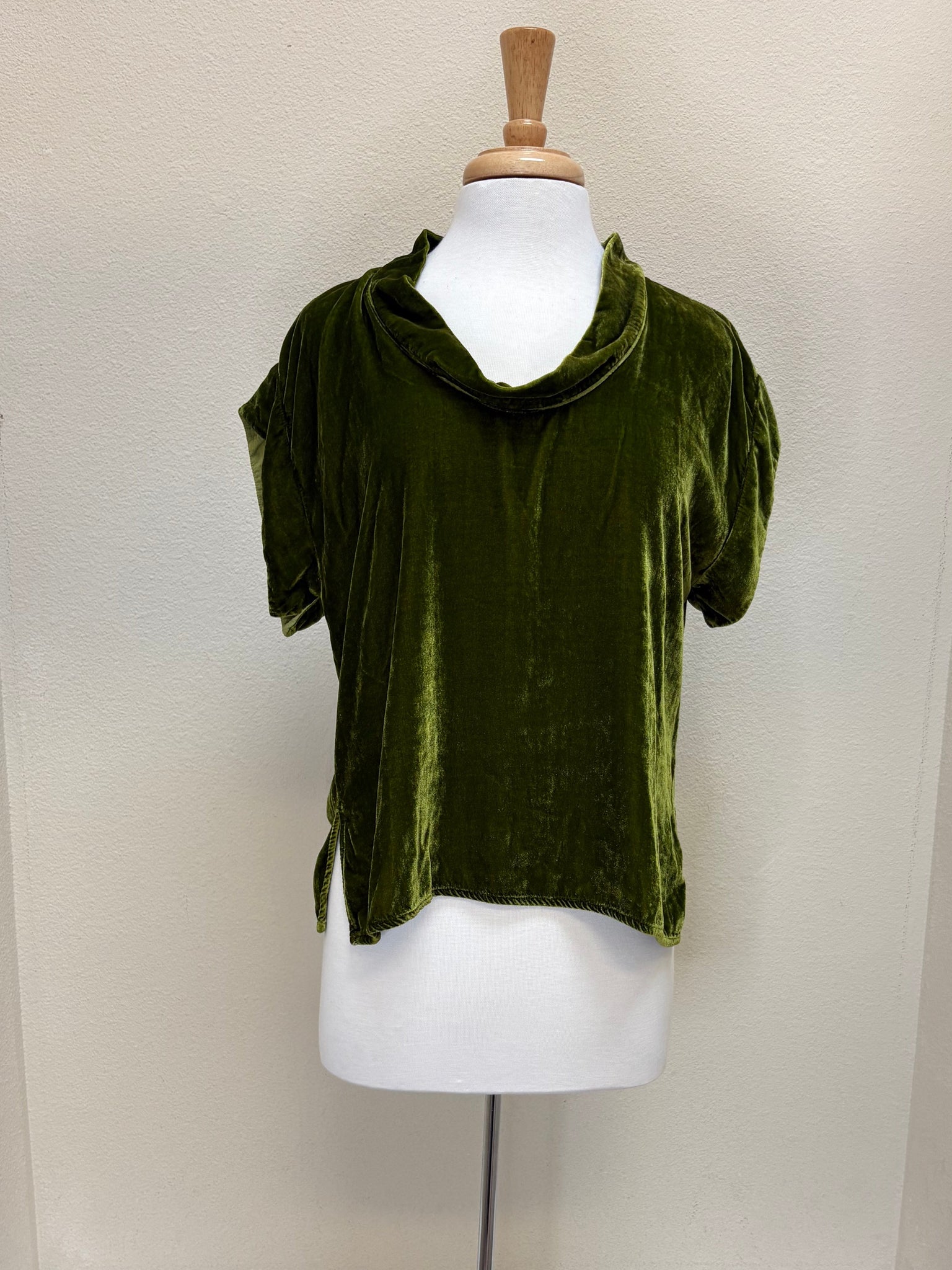 Cut Loose - your "go-to" pieces! A returning fabric and design! This velvet cowl top features a cowl neck, short sleeves and side slits. We love velvet for fall! Lightweight, breathable and comfortable - you can't beat it!