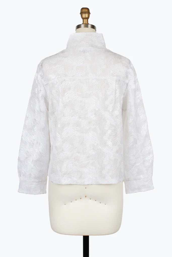DAMEE ABSTRACT SEQUIN EMBROIDERY BIKER JACKET - 2488-WHT