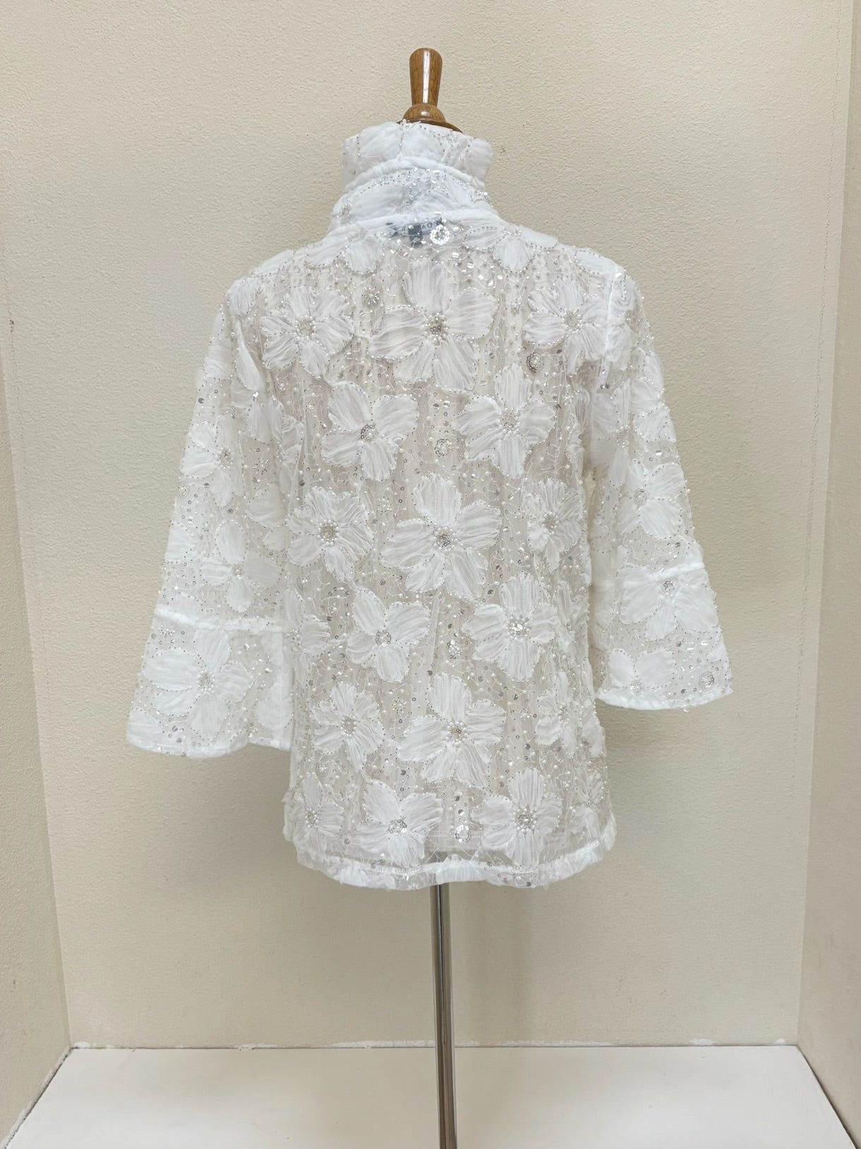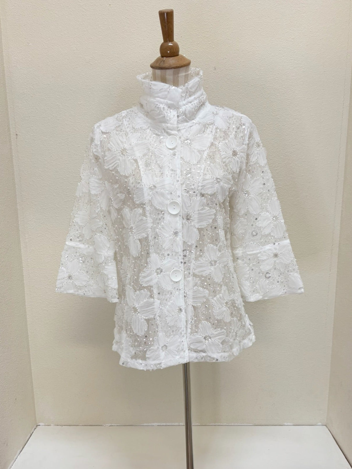 DAMEE BEADED FLOWER MESH JKT - 2420 - WHT - S ONLY