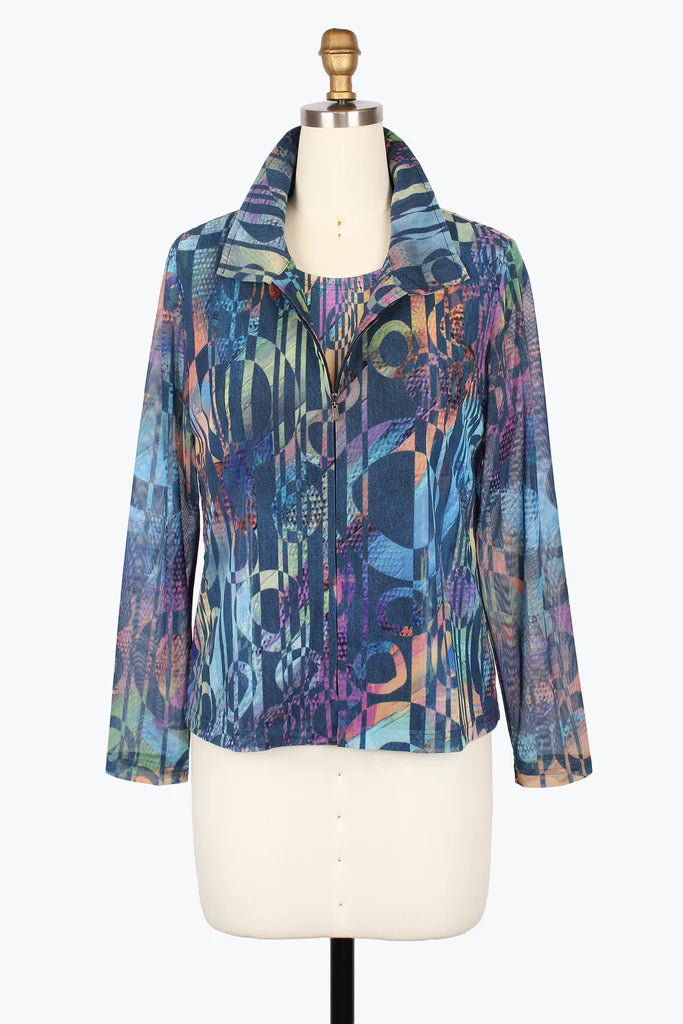Jacket: Printed mesh fabric, zip-up closure, wired standing collar, long sleeves