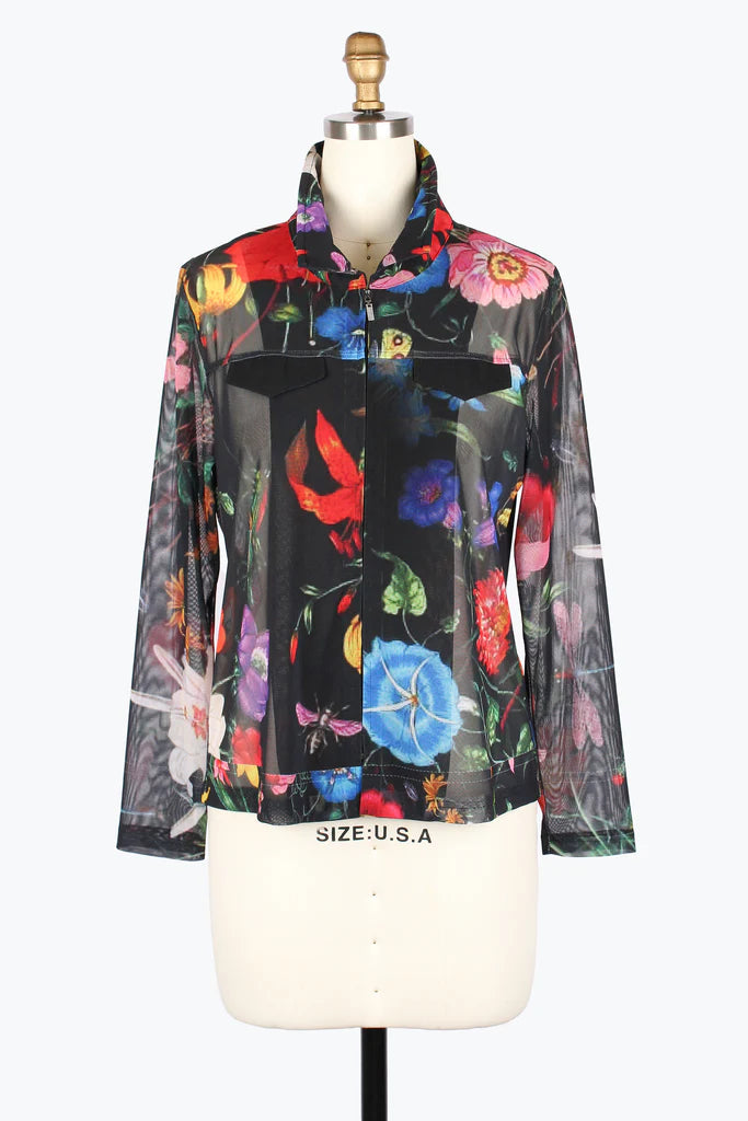 Jacket: Printed mesh fabric, zip-up closure, wired standing collar, long sleeves
