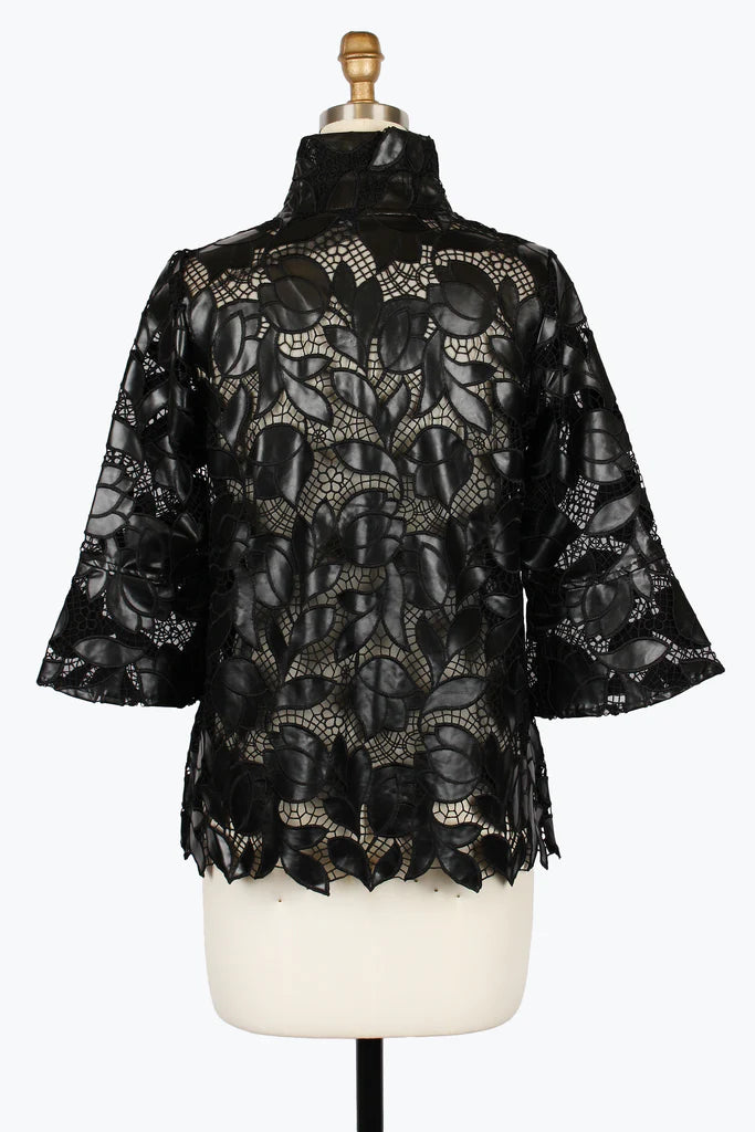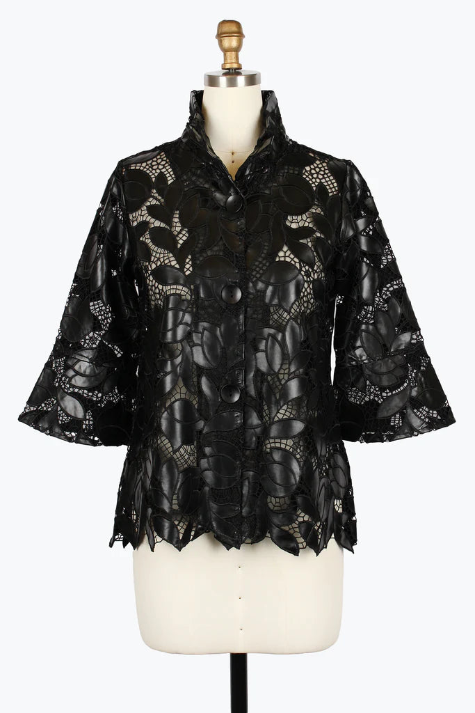 DAMEE FLORAL PLEATHER LACE JACKET - 2479-BLK