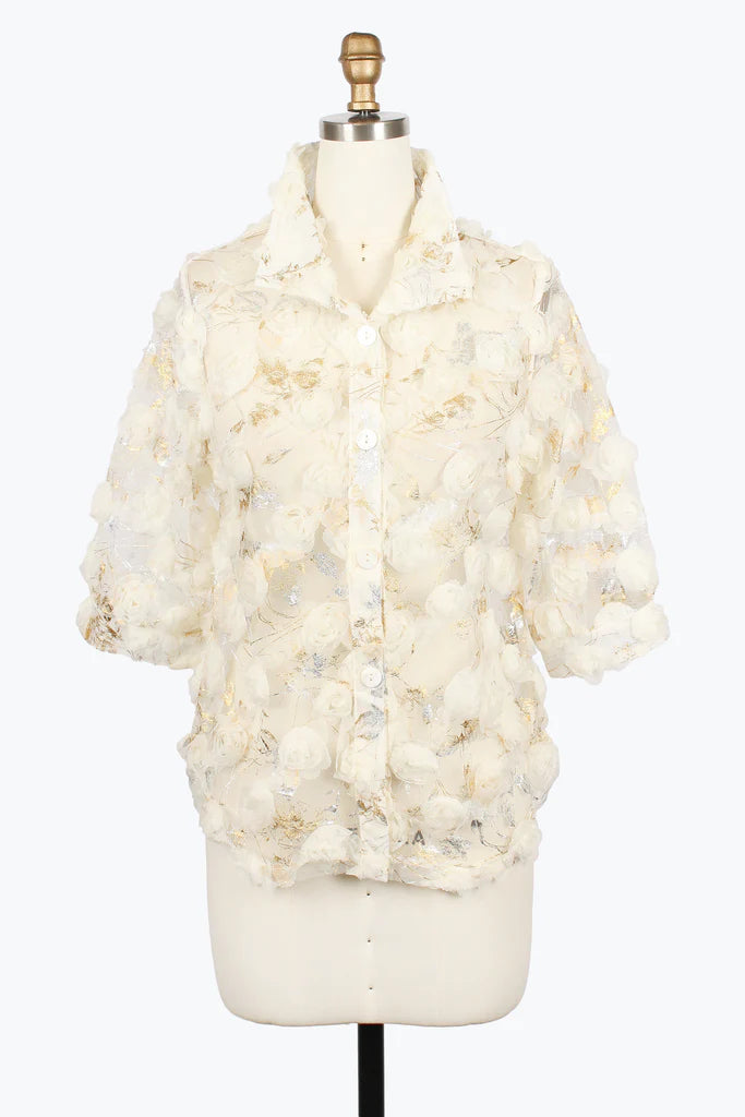 DAMEE FOIL&ROSETTE MESH BLOUSE - 7121-IVR
