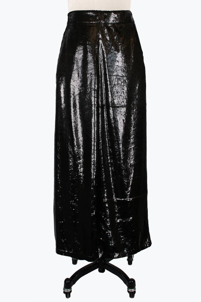 DAMEE METALLIC EYELASH FRINGE WIDE LEG PANTS - 1229-BLK