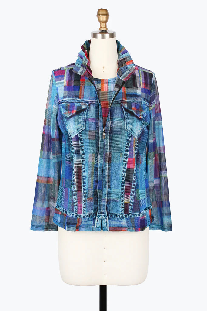 DAMEE MULTI-PLAID DENIM MESH TWIN SET - 31449-DNM