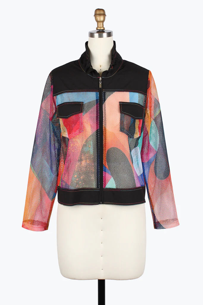 DAMEE OIL PAINTING FULL ZIP NET JACKET - 2489-BLK