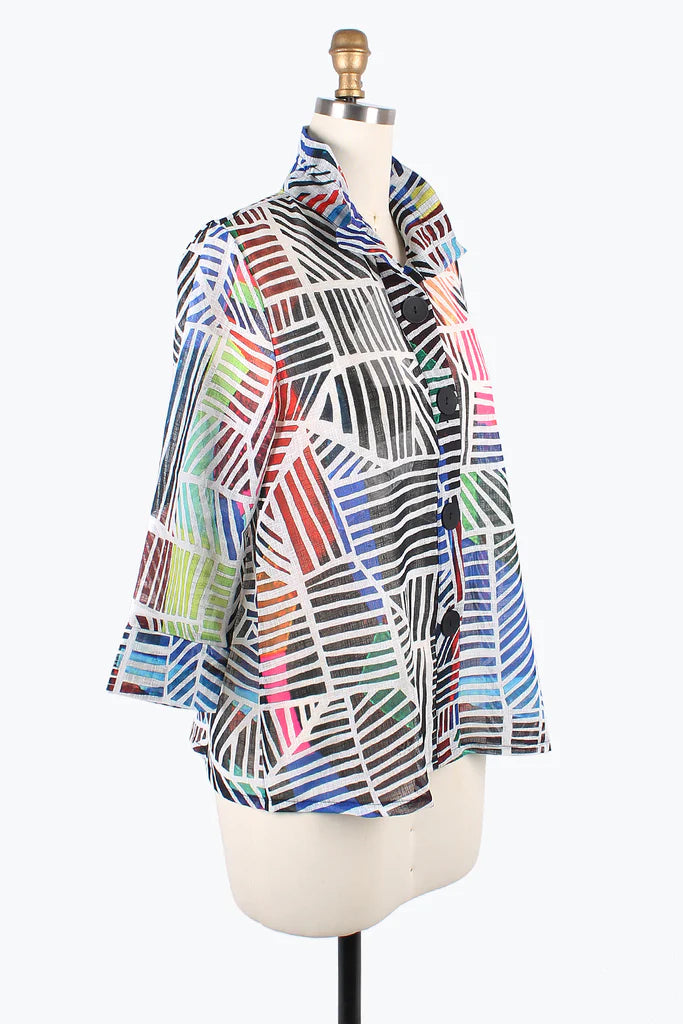 DAMEE SEAMLESS STRIPE STRAIGHT SLV JKT- 4874 - MLT