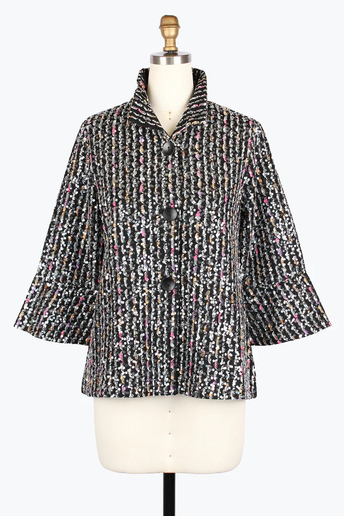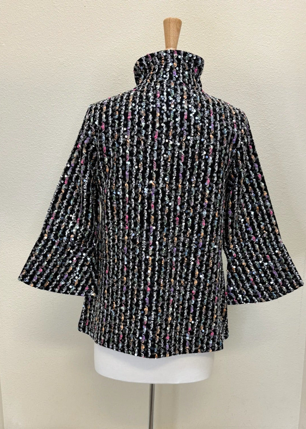 DAMEE SEQUIN CHENILLE STRIPE KNIT JKT - 4978-MLT