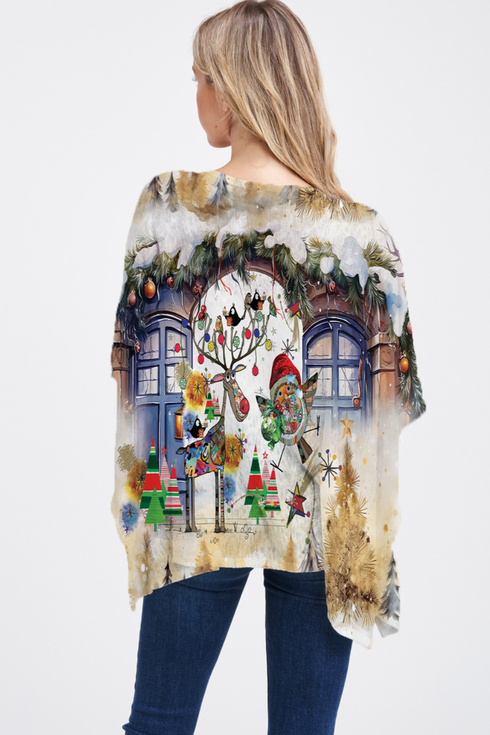 This Christmas print is the perfect pattern to dress up or down for endless outfit possibilities. Featured in the Et Lois Sheila body, this piece is a versatile open wrap that can be worn around the shoulders and waist or as a scarf. Don’t miss out on this incredible addition to your wardrobe!
