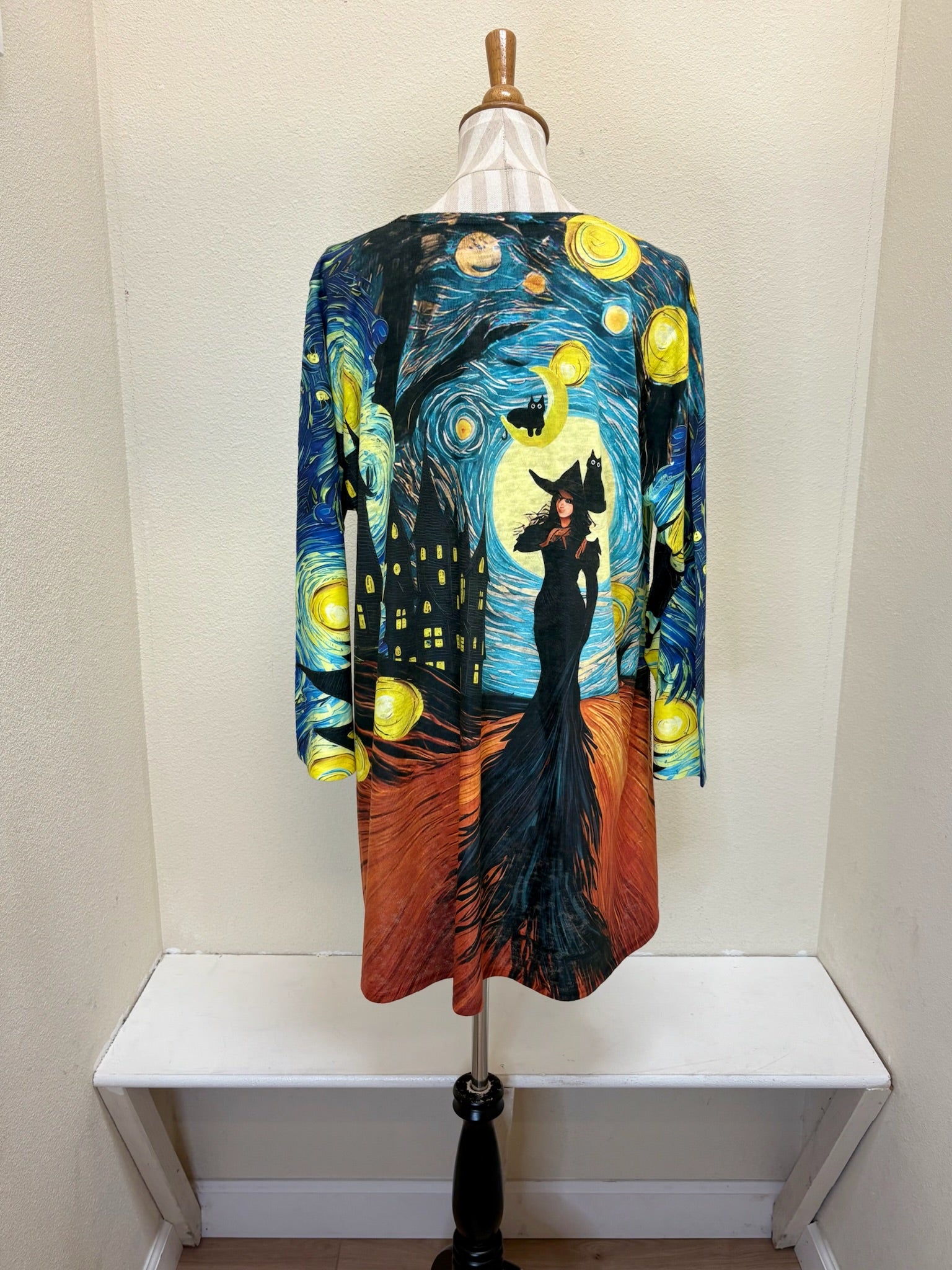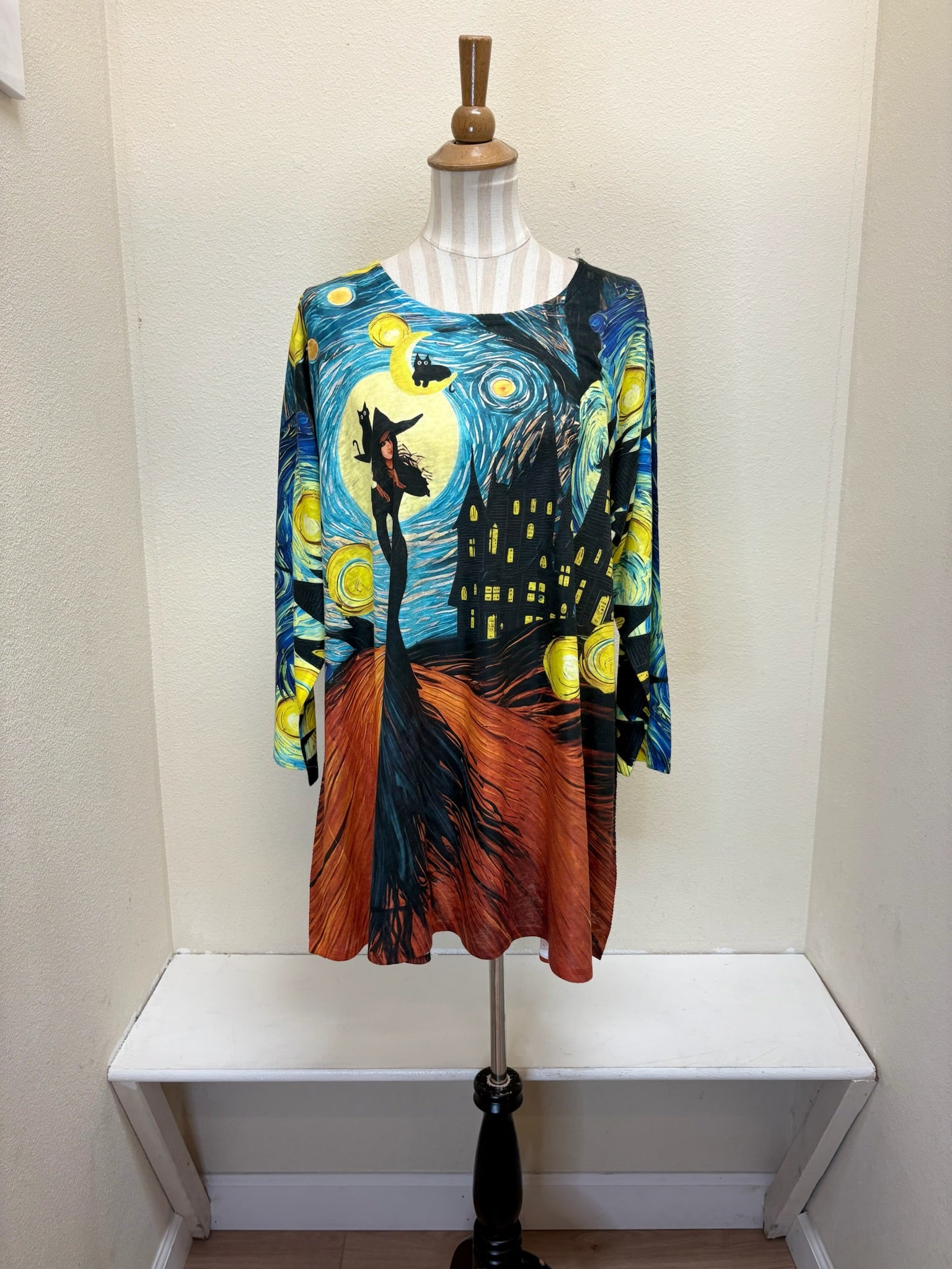 This Halloween print is the perfect pattern to dress up or down for endless outfit possibilities. Featured in the Et Lois Lowa body, this top creates a flattering and comfortable fit with a 3/4 sleeve length, a classic scoop neck, and A-line swing style. Don’t miss out on this incredible addition to your wardrobe!