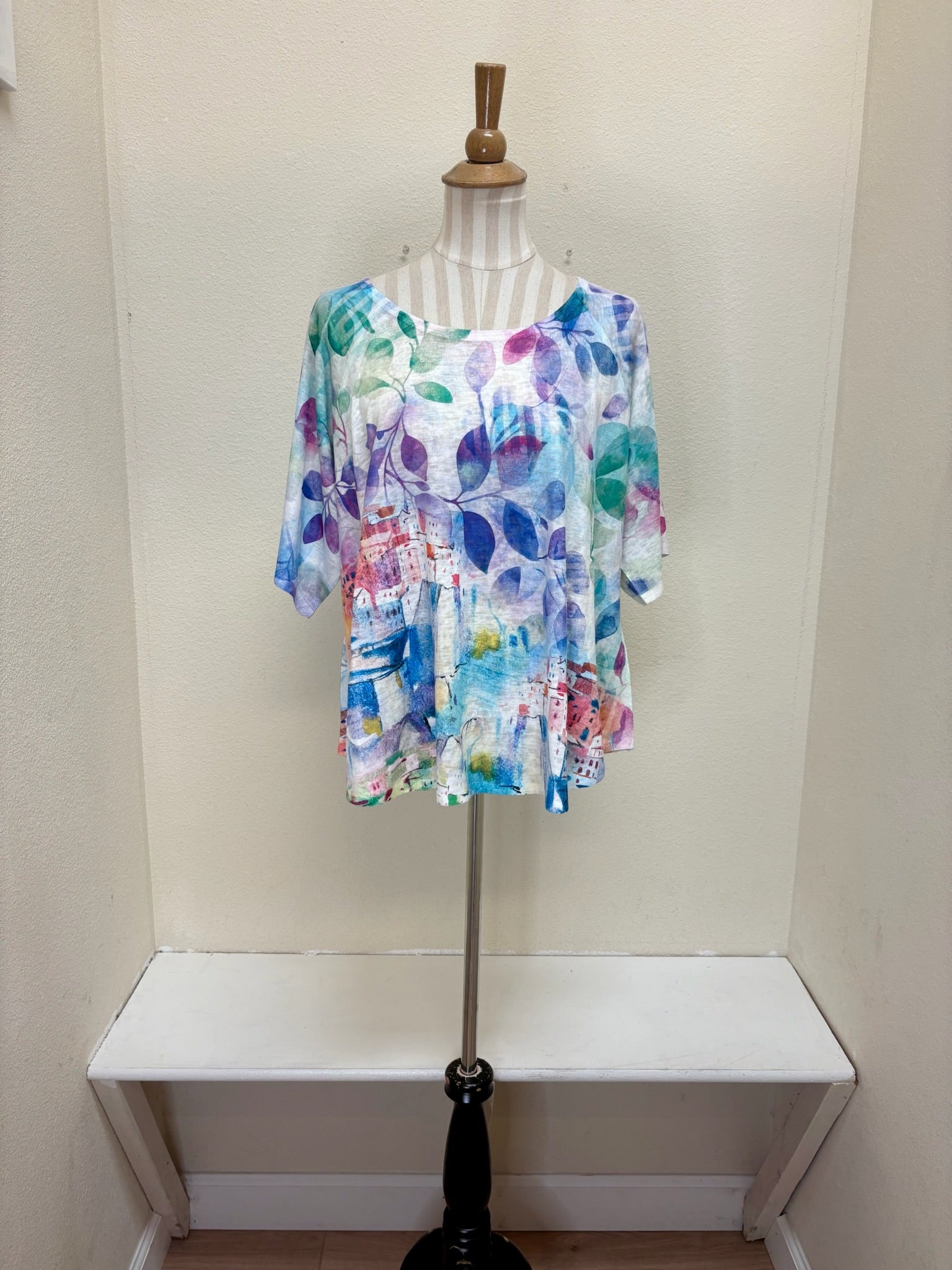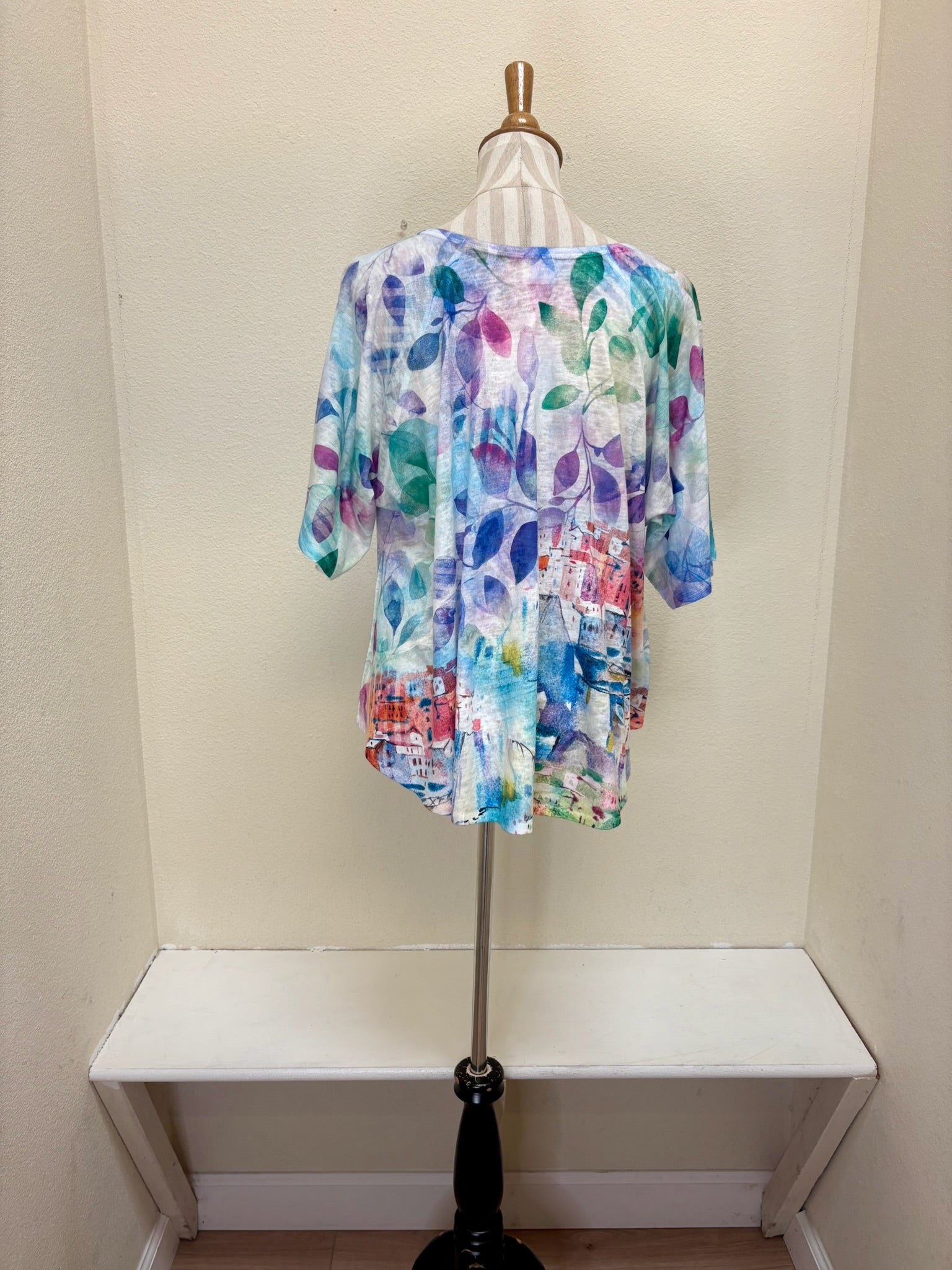 This abstract city-floral print is the perfect pattern to dress up or down for endless outfit possibilities. Featured in the Et Lois Apple body, this top creates a flattering and comfortable fit with a wide half sleeve, scoop neck style and round hemline. Don’t miss out on this incredible addition to your wardrobe!