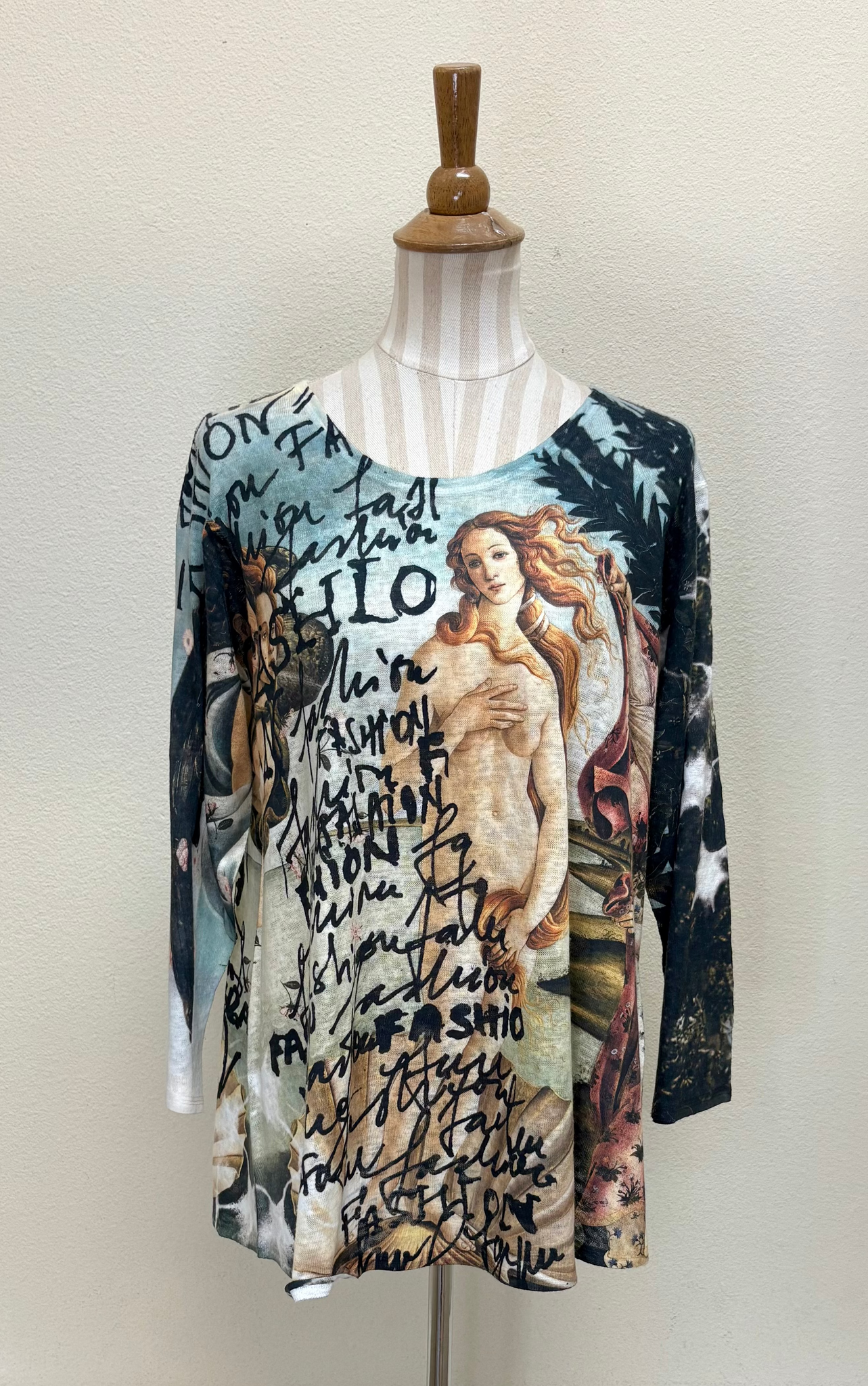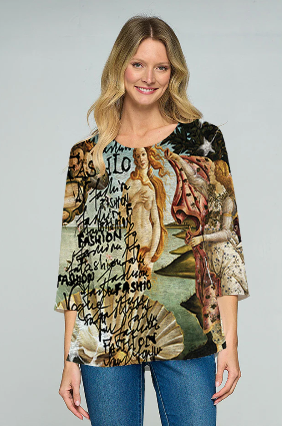 This graphic print is the perfect pattern to dress up or down for endless outfit possibilities. Featured in the Et Lois Honey body, this top creates a flattering and comfortable fit with a 3/4 sleeve length and classic scoop neck style. Don’t miss out on this incredible addition to your wardrobe!