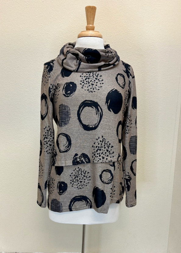 Shana Fleece Asymmetrical Cowl Neck - 25649 - KHAKI