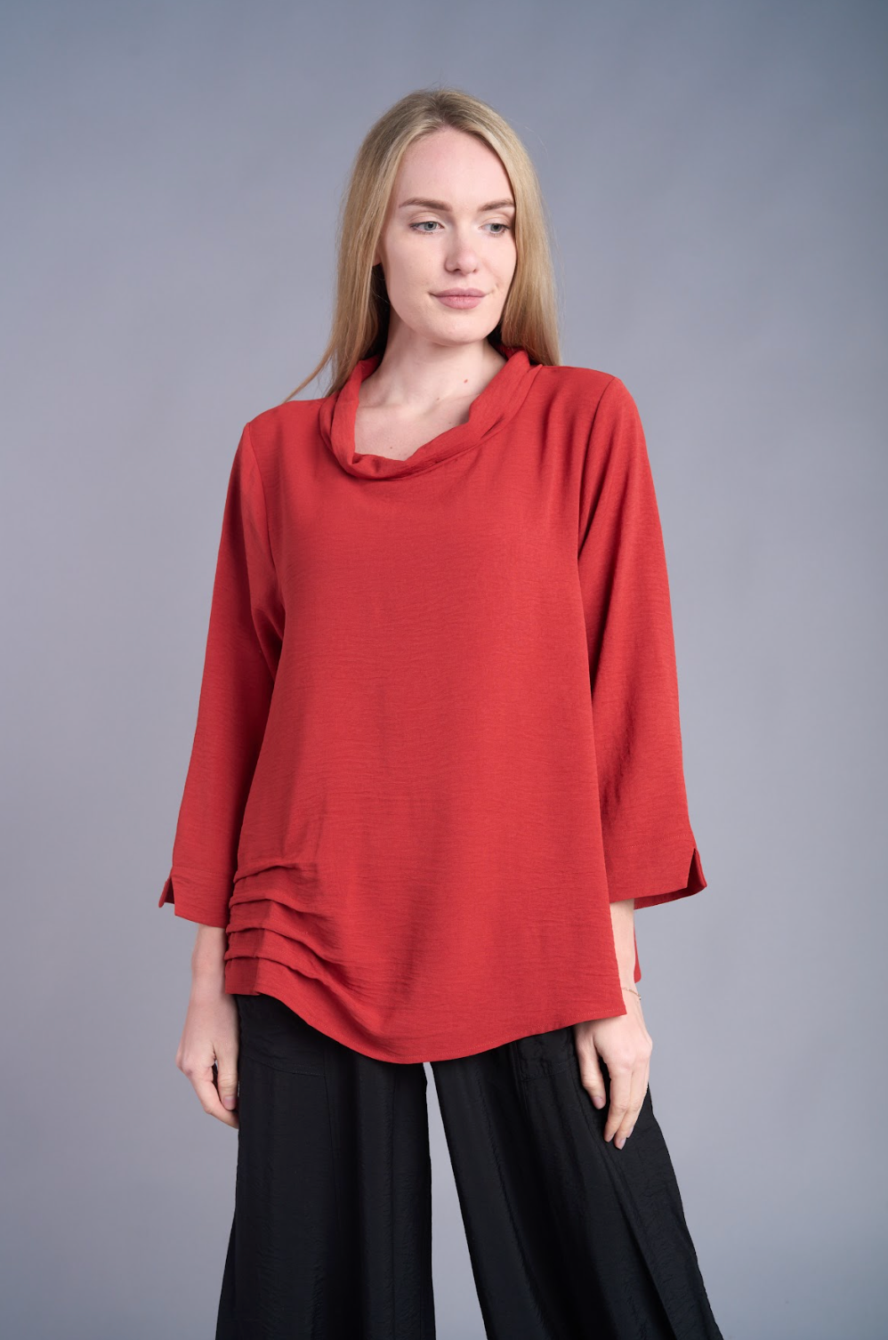 Shana Solid Airflow Mock Neck Top - 25857 - RUST