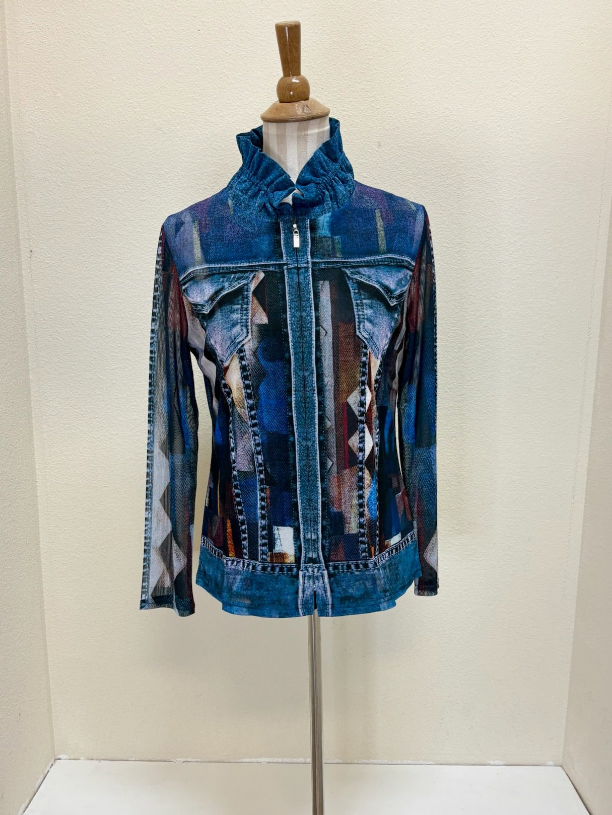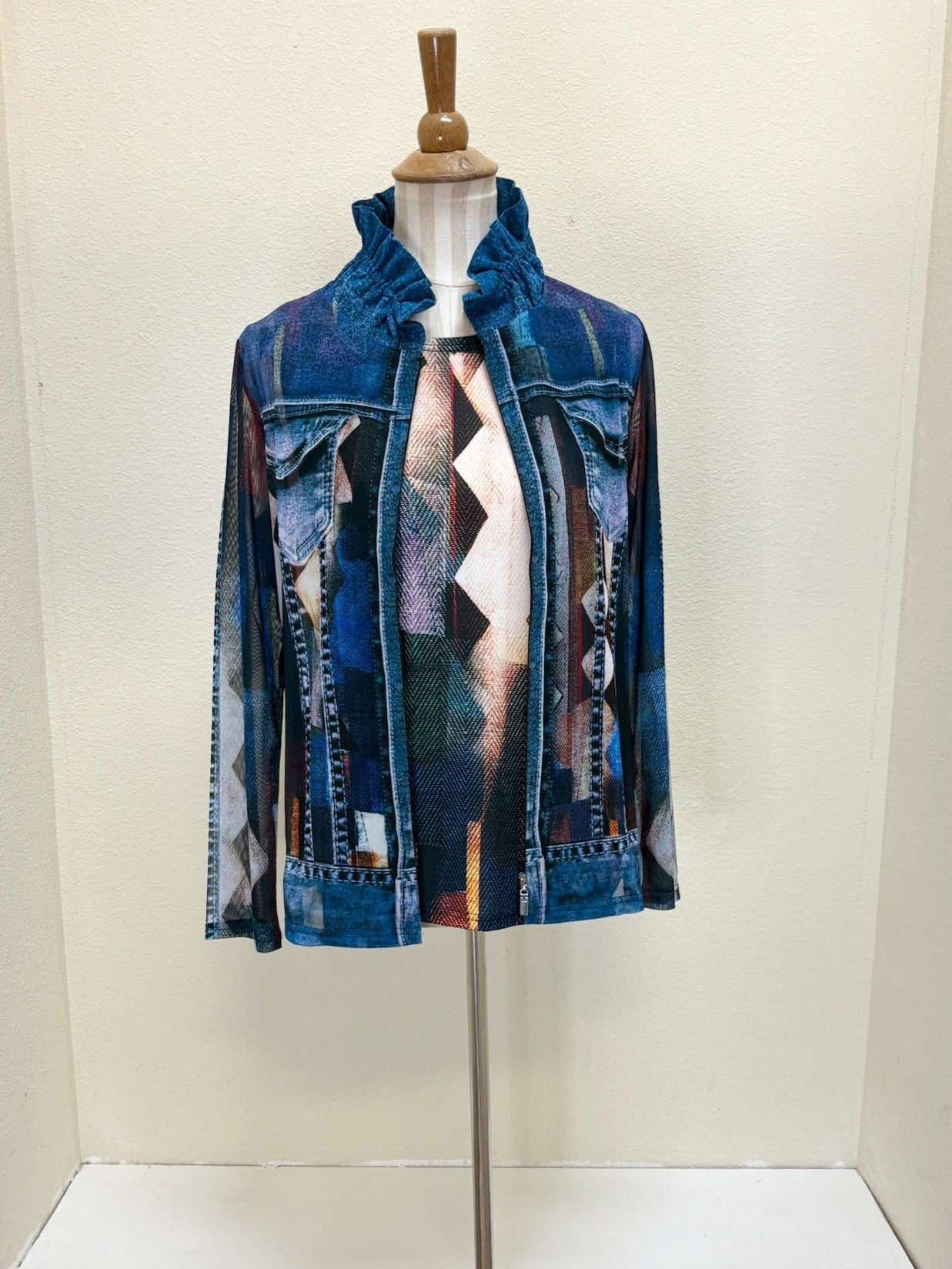 DAMEE ZIGZAG DENIM MESH TWIN SET - 31446-MLT