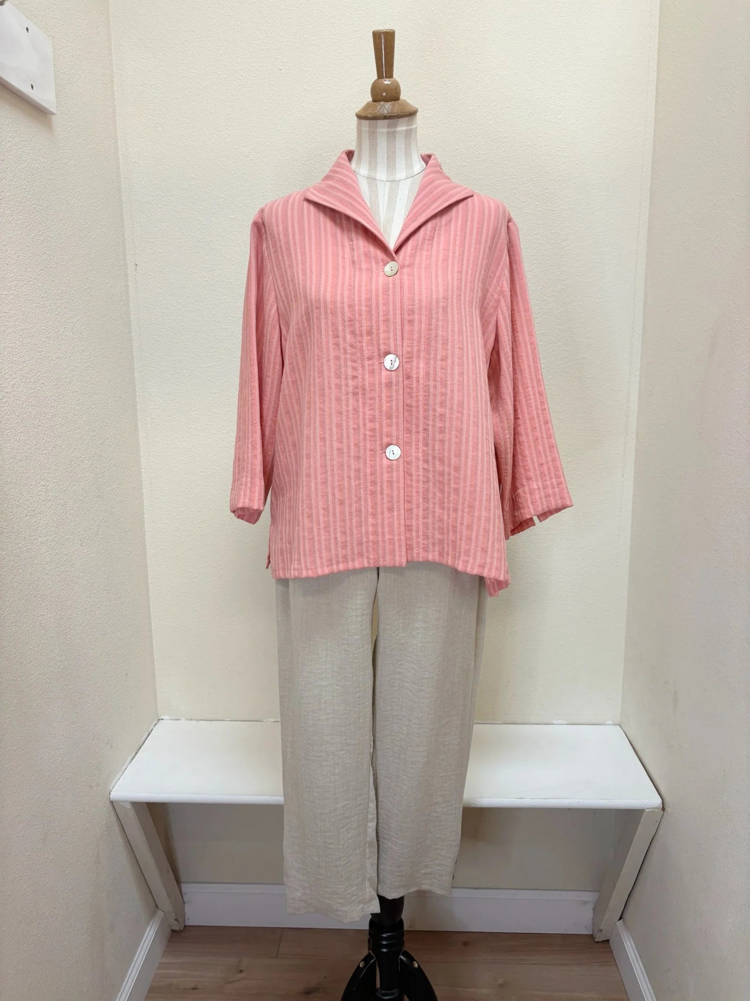 This pairs perfectly with the Fridaze Linen Crop Pant with Button Details in Sand!