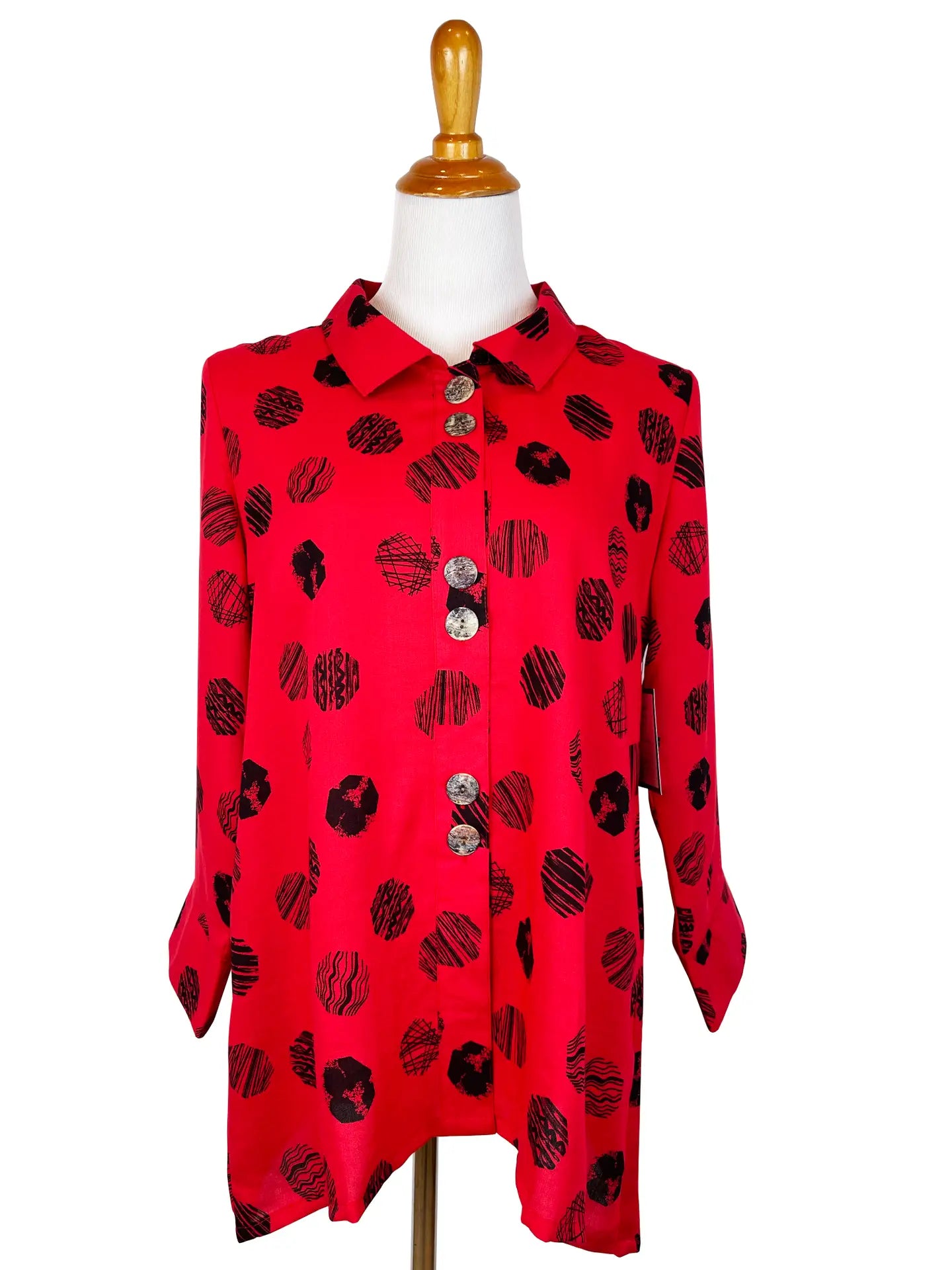 *Please note that the model is wearing Mediterranean, Strawberry, Paprika, Emerald, Lipstick Octagons, Evergreen and Marigold to show the style of the shirt. Please choose a color based on the specific listing, other colors are available!
