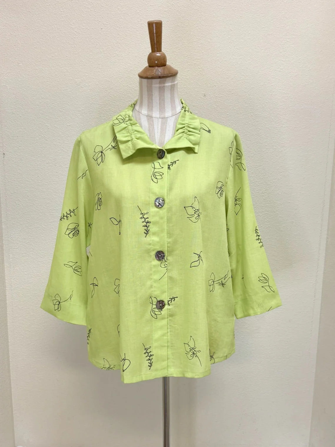 *Please note that the model is wearing Black Floral on Pear, Camellia, Daffodil, Passion flower, and Aqua to show the style of the shirt. Please choose a color based on the specific listing, other colors are available!