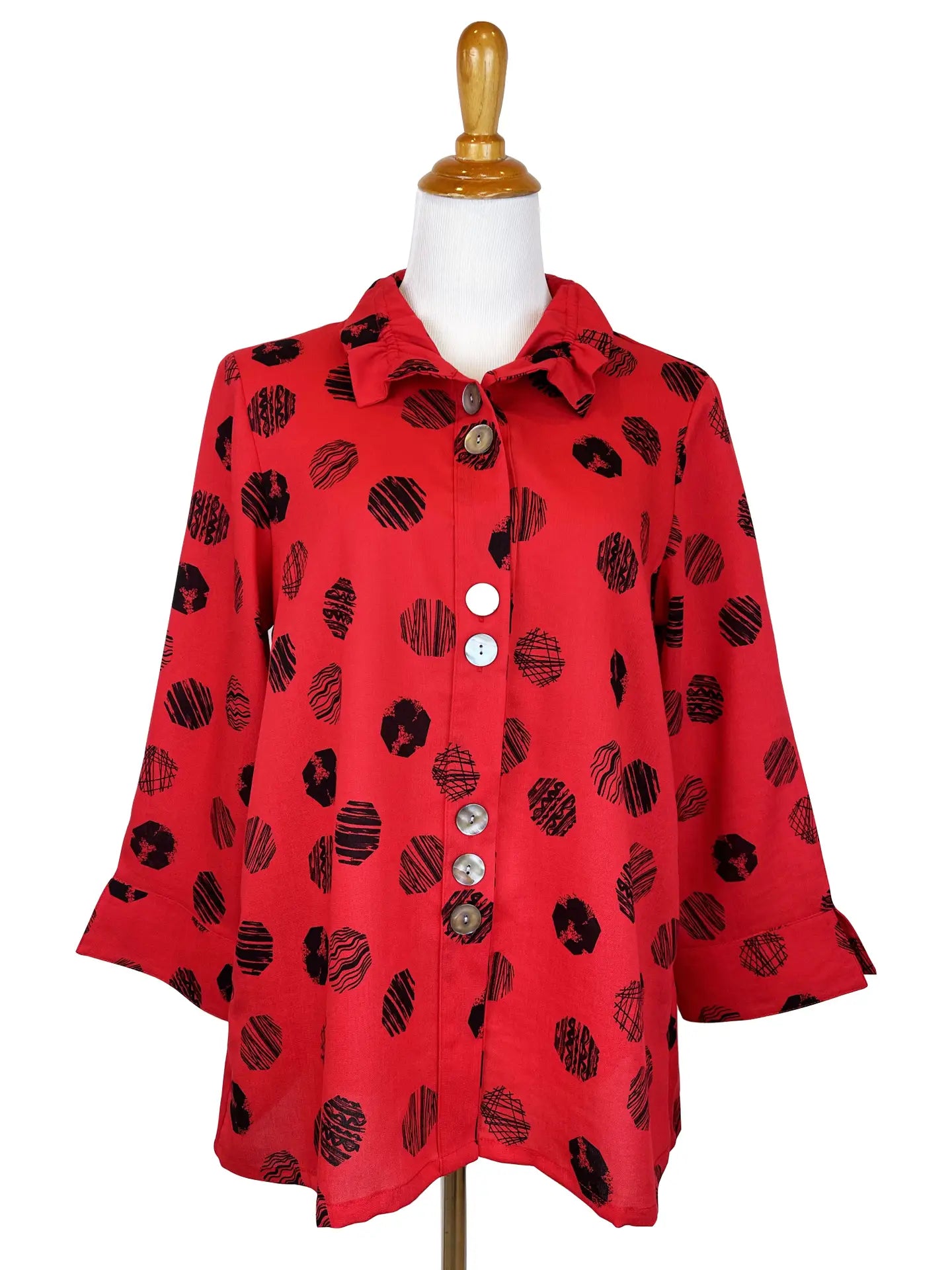 *Please note that the model is wearing Mediterranean, Strawberry, Paprika, Emerald, Lipstick Octagons, Evergreen, and Marigold to show the style of the shirt. Please choose a color based on the specific listing, other colors are available!