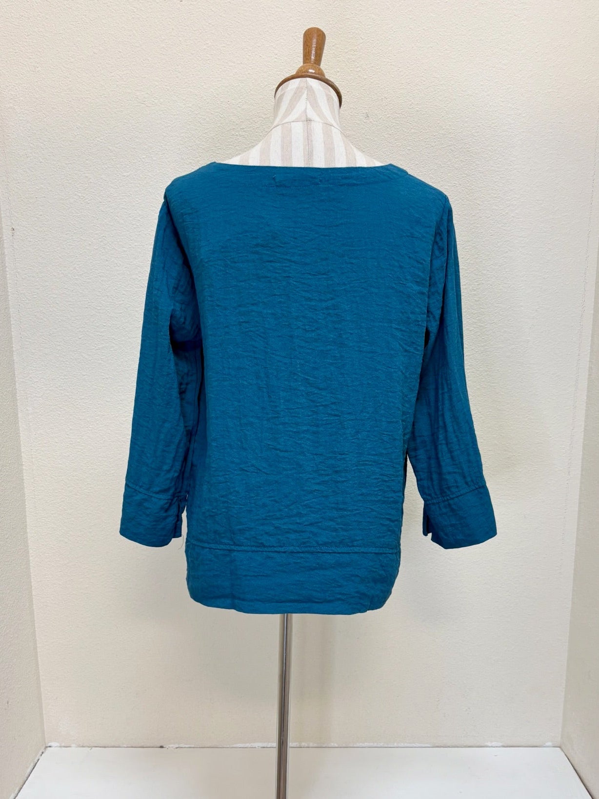 Cut Loose - your "go-to" pieces! A returning fabric and design! This fall parachute top features a v-neck, 3/4 sleeves and side slits. Made from lightweight crinkle fabric. This is a wardrobe staple!