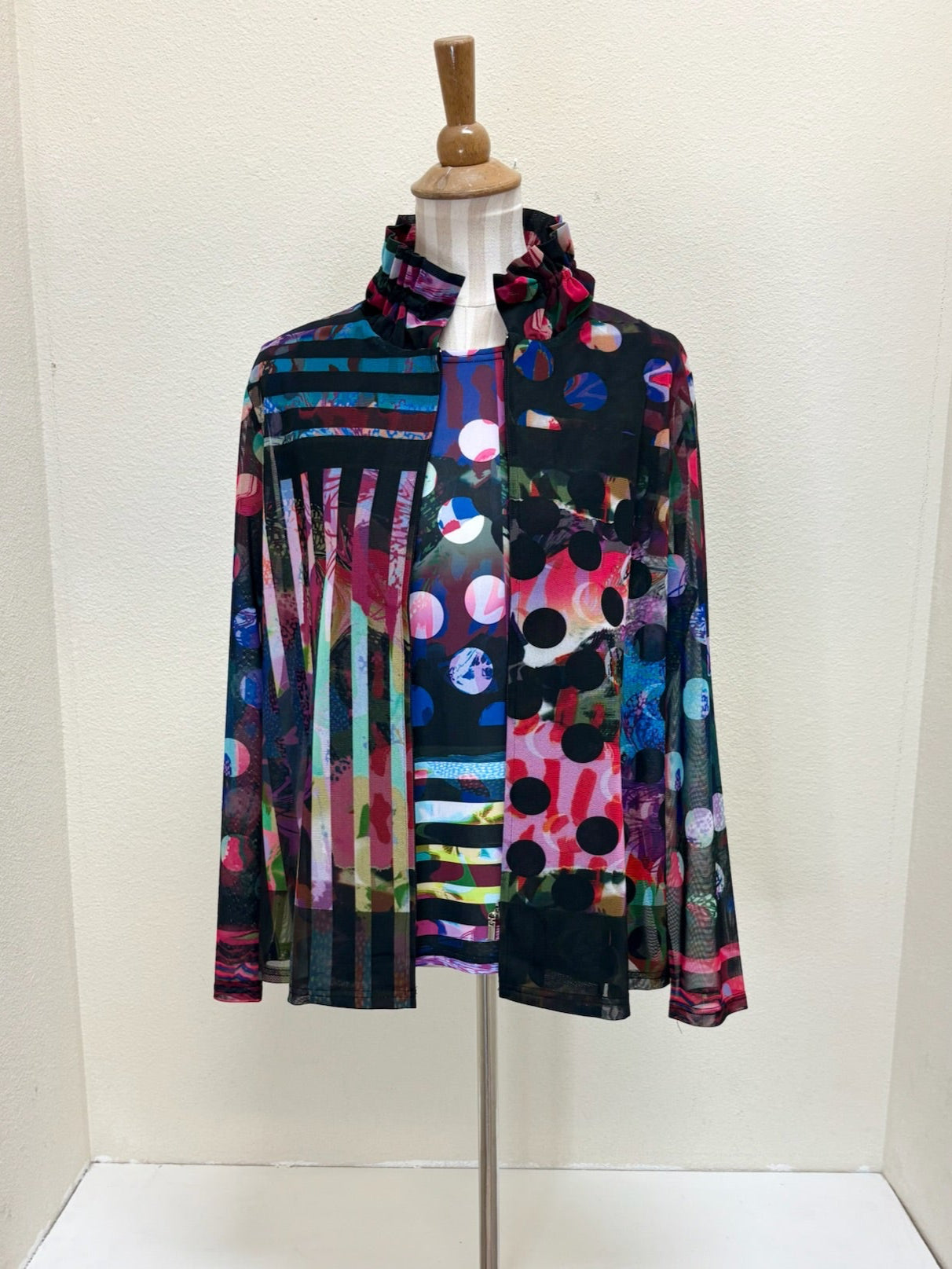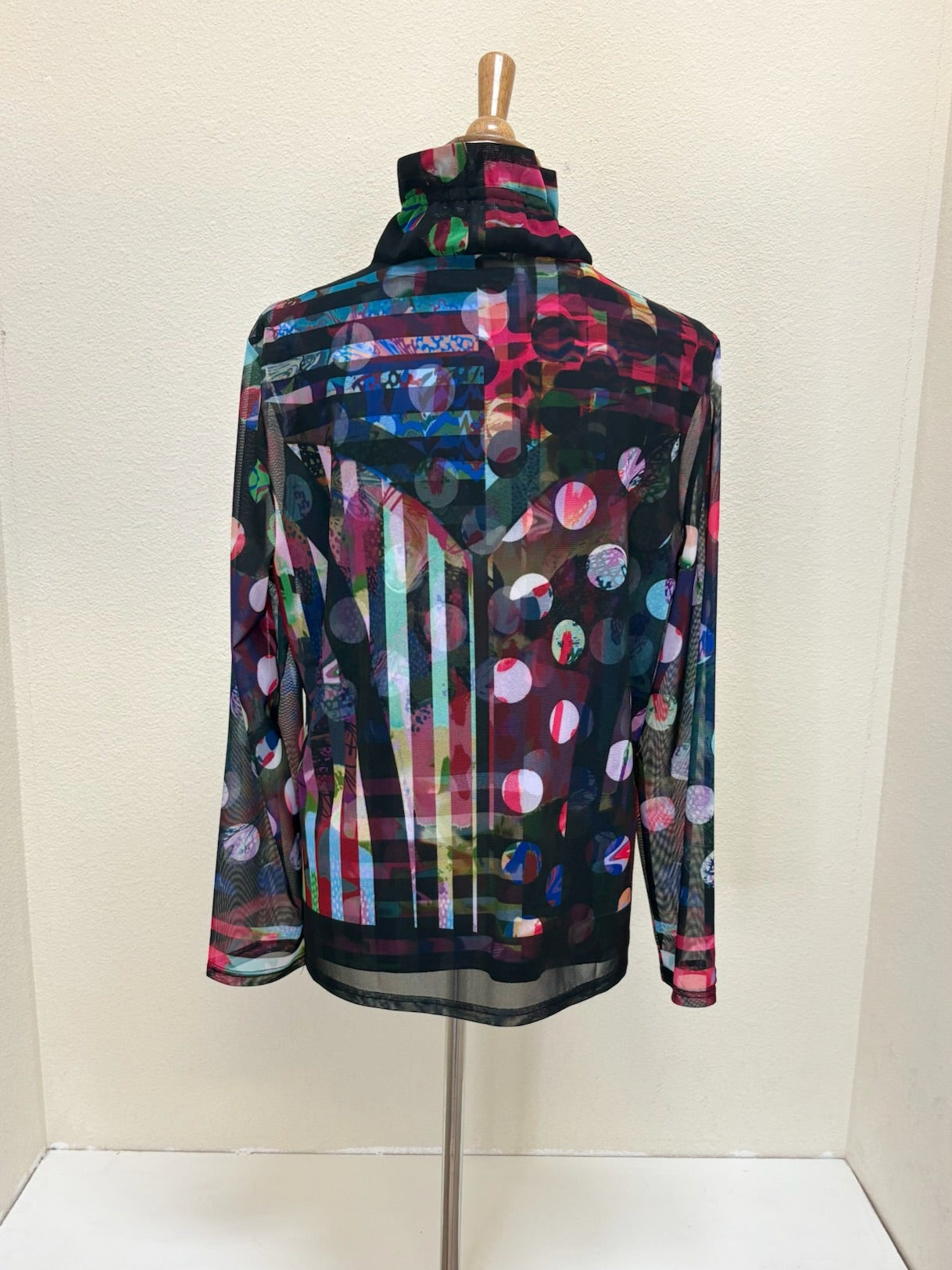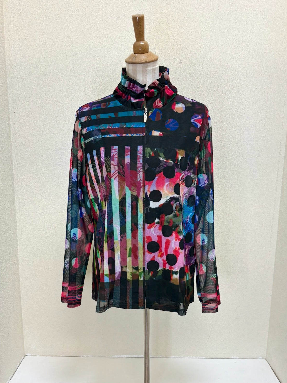Jacket: Printed mesh fabric, zip-up closure, wired standing collar, long sleeves