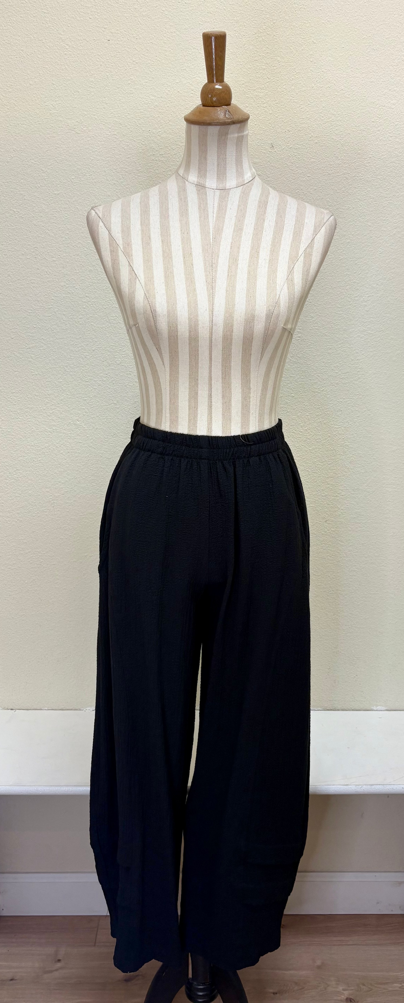 Elastic black pant with pockets. These pants are a perfect lightweight pant that can be worn with a variety of Moonlight tops.