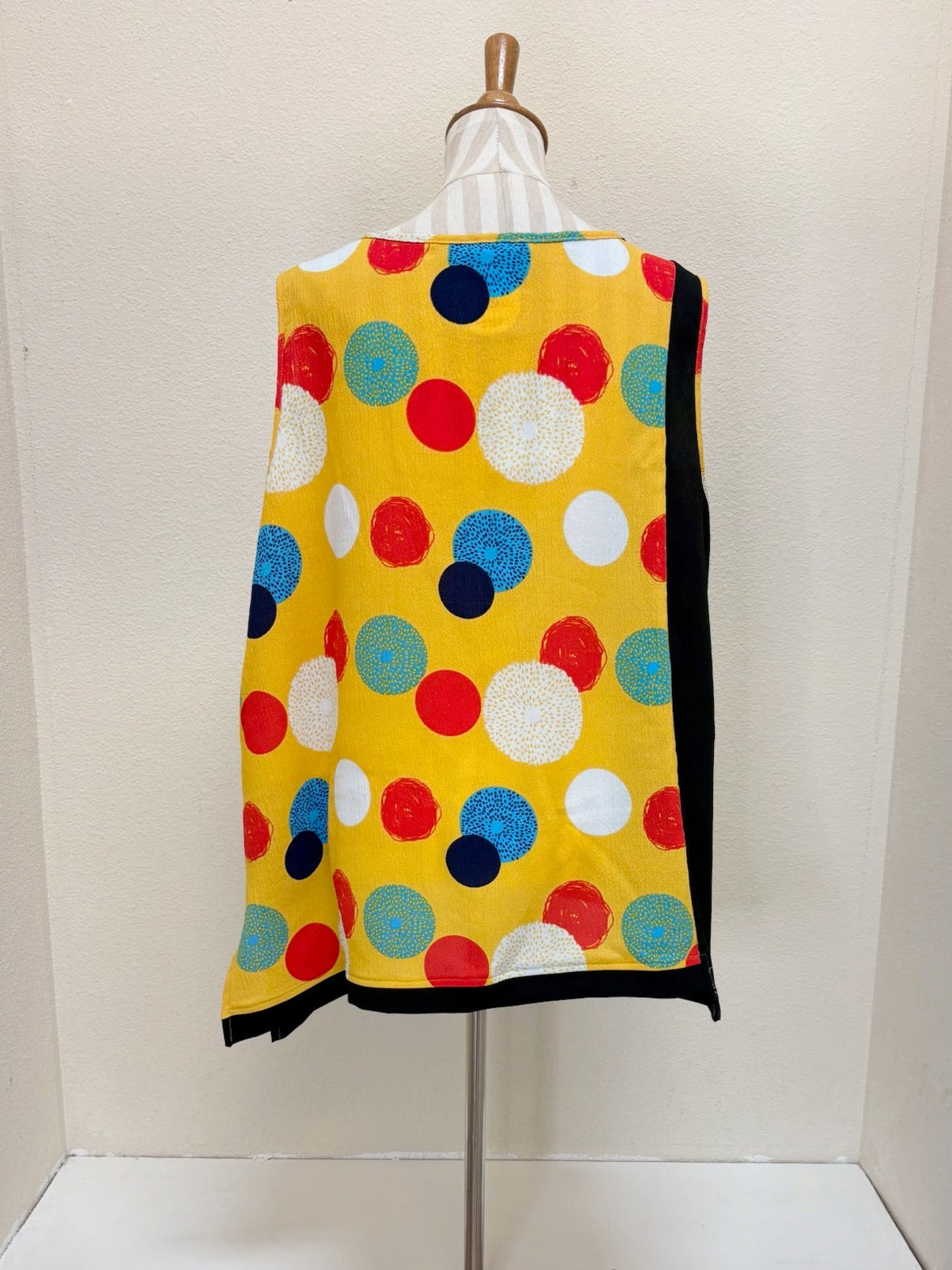 This Moonlight Top features polka dots in red, blue, yellow, and black. The perfect balance of style and comfort, this top is a must-have for any wardrobe. With its versatile design, it can be dressed up or down for any occasion. Make a statement with this trendy and chic top.
