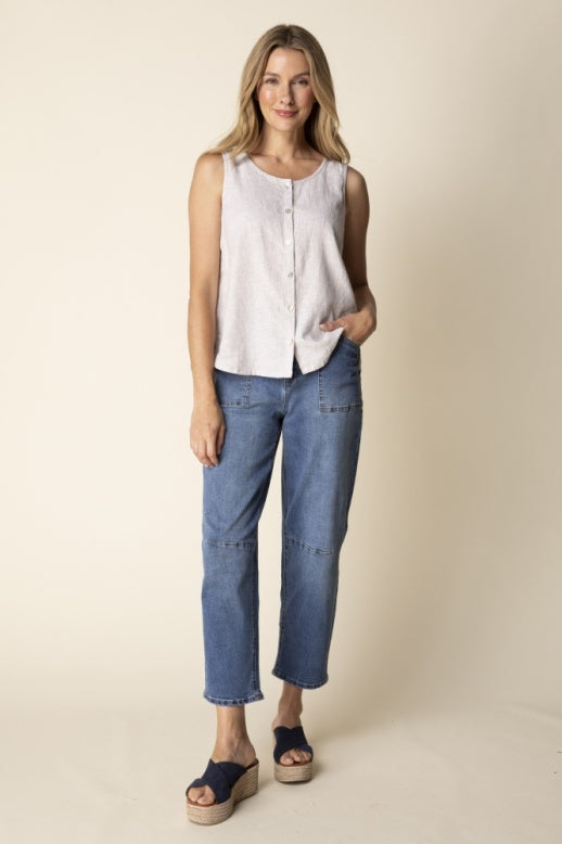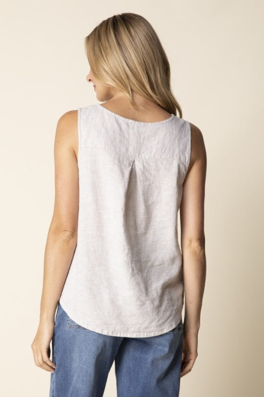 Habitat Linen Solid Pleat Back Button Tank - 41506 - CORNFLOWER (NOT OATMEAL)