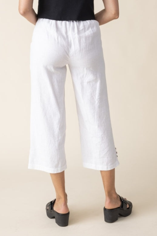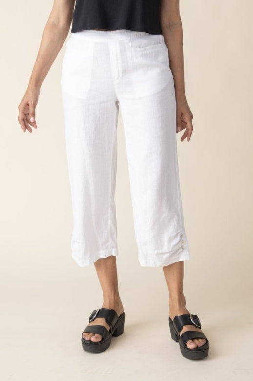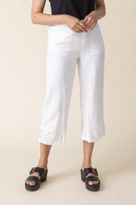 Habitat Linen Solid Pleat Button Capri - 41576 - WHITE
