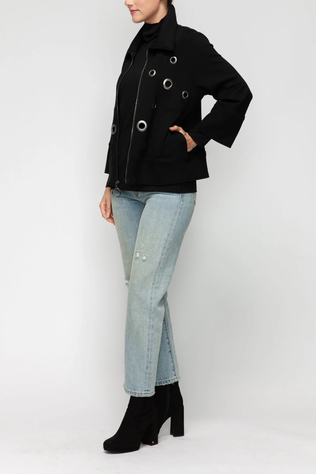 FRONT EYELET DETAIL PU JACKET