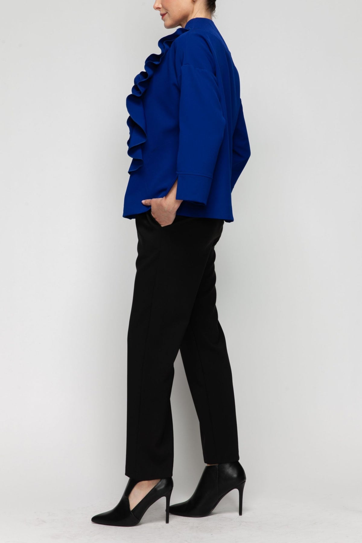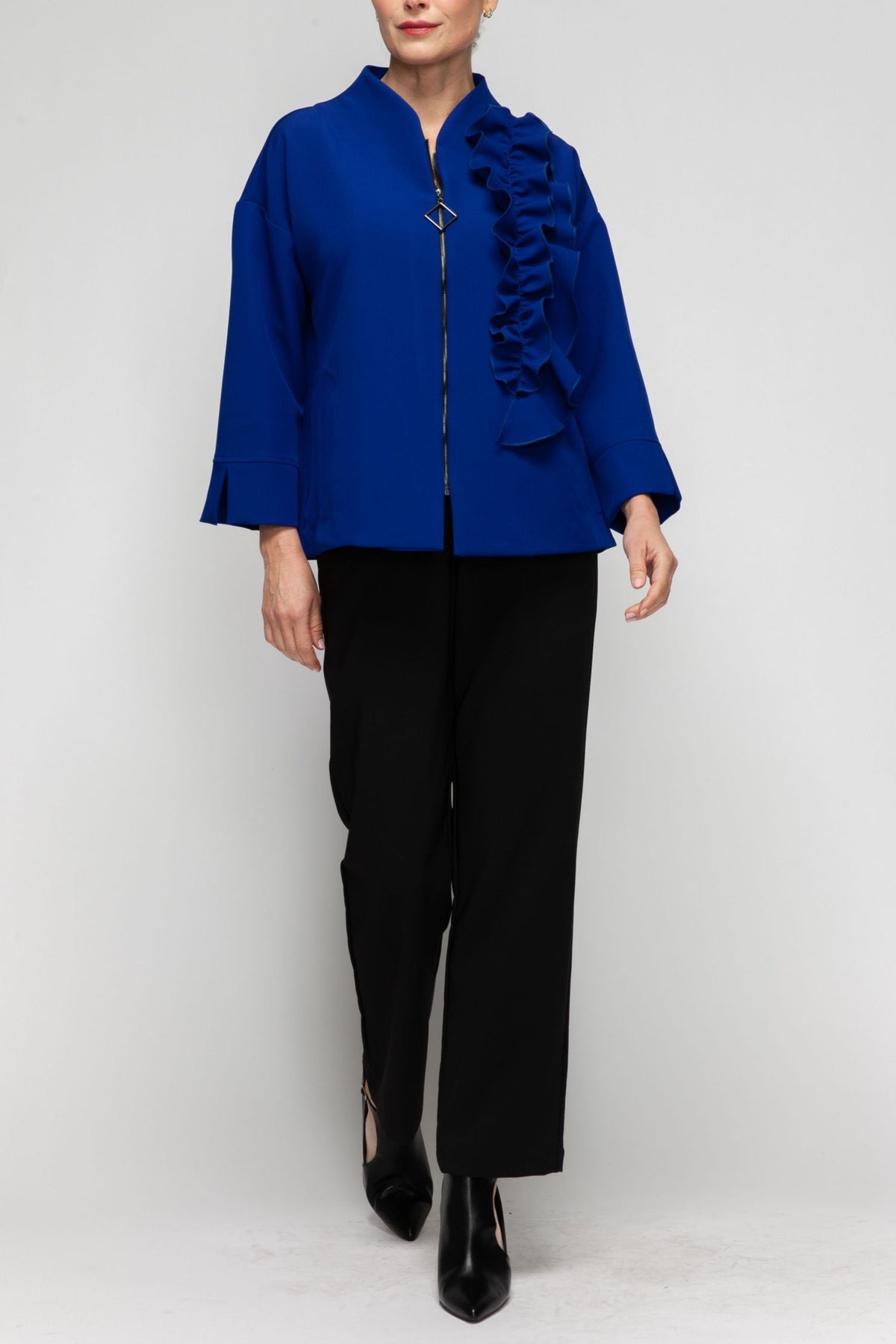 RUFFLE TRIM JACKET WITH ZIPPER