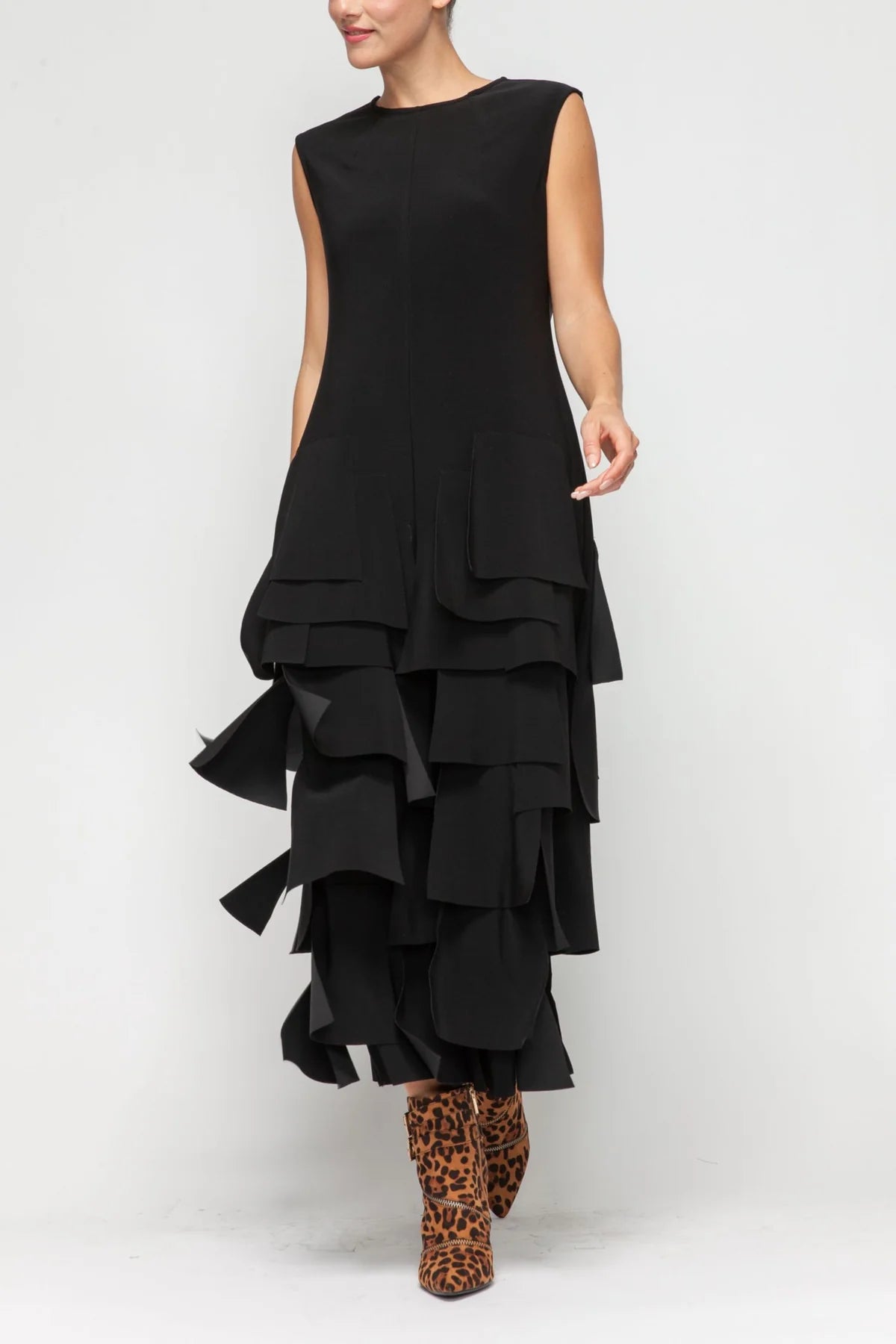 Striking asymmetrical patch detailing defines this contemporary jumpsuit, offering a refined silhouette that transitions seamlessly from day to evening. The IC Collection design balances modern edge with timeless elegance, making it an essential piece for the discerning wardrobe. In classic black, it pairs effortlessly with minimal accessories for maximum impact.