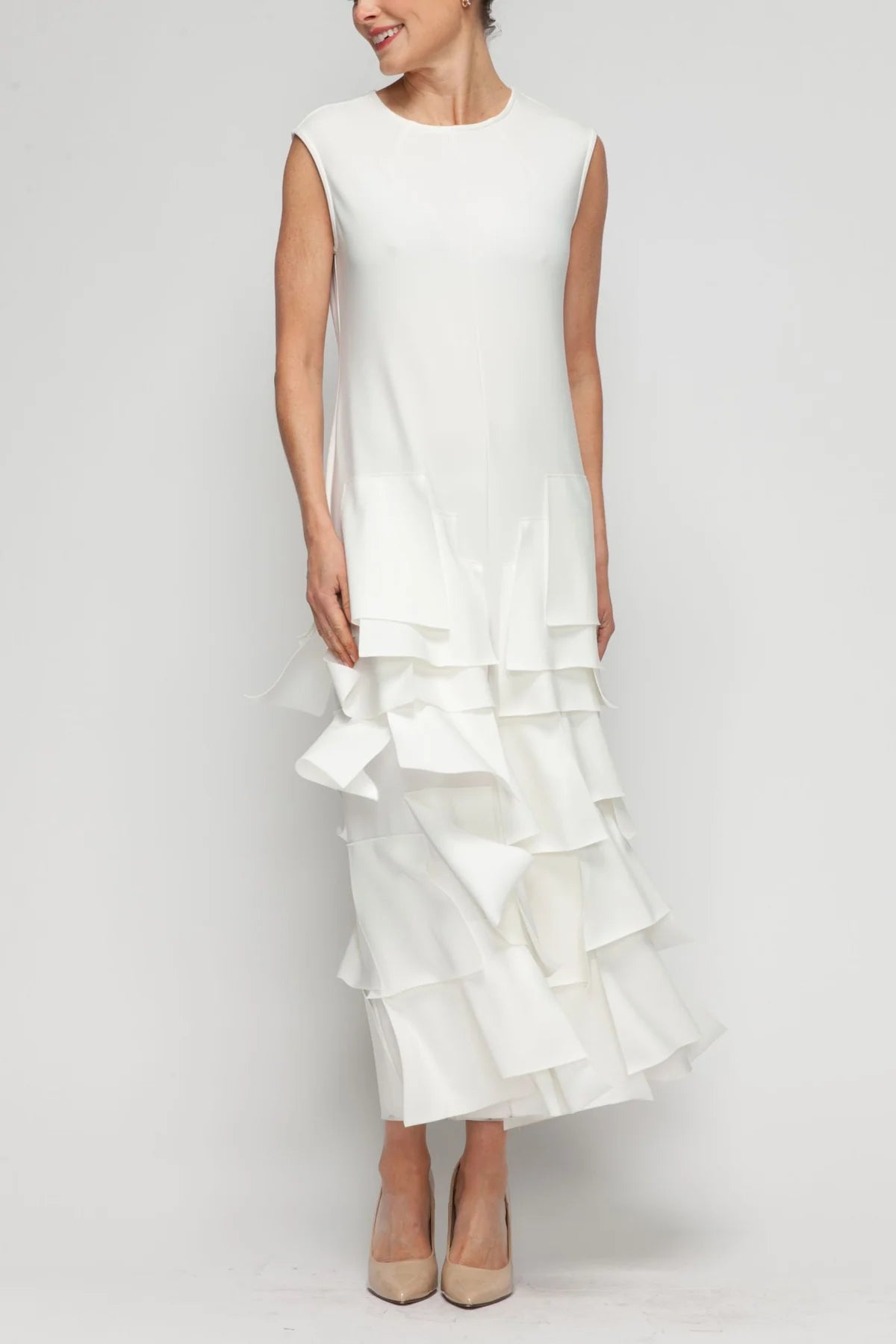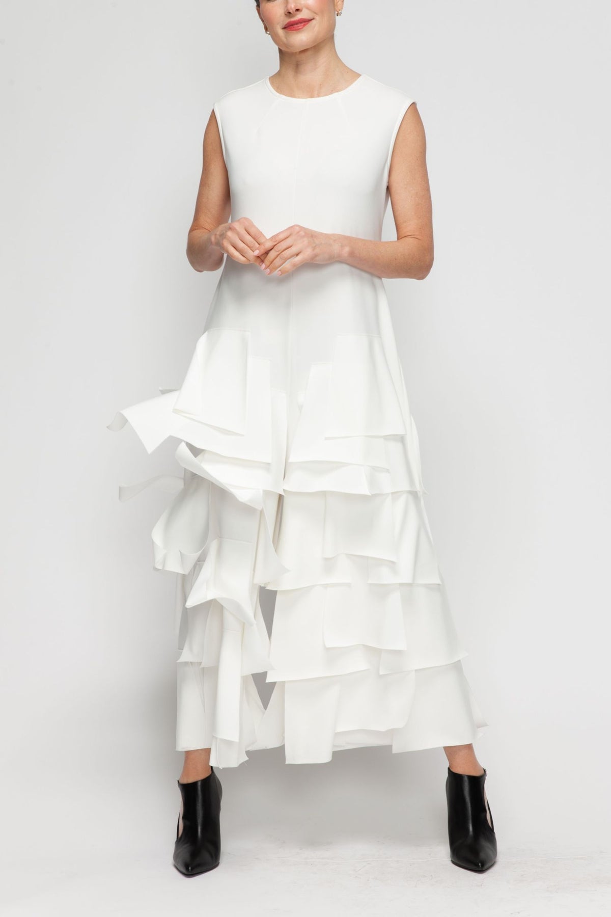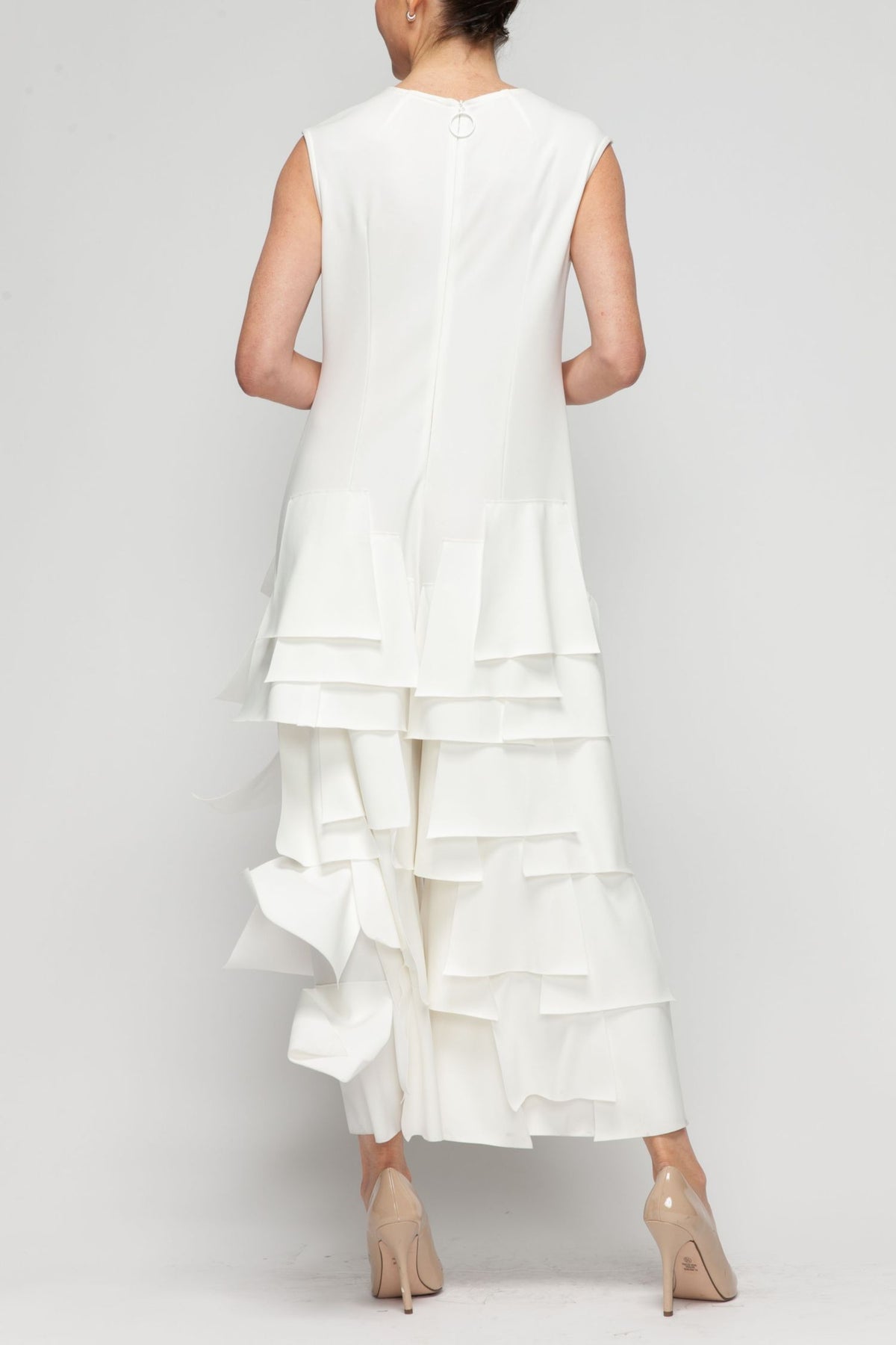 Striking asymmetrical patch detailing defines this contemporary jumpsuit, offering a refined silhouette that transitions seamlessly from day to evening. The IC Collection design balances modern edge with timeless elegance, making it an essential piece for the discerning wardrobe. In classic white, it pairs effortlessly with minimal accessories for maximum impact.